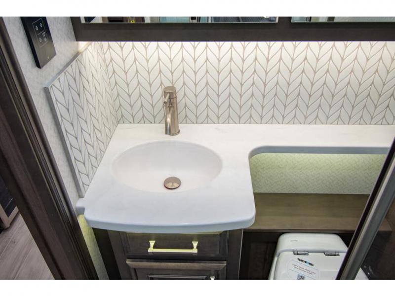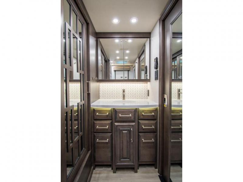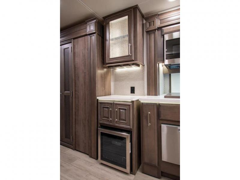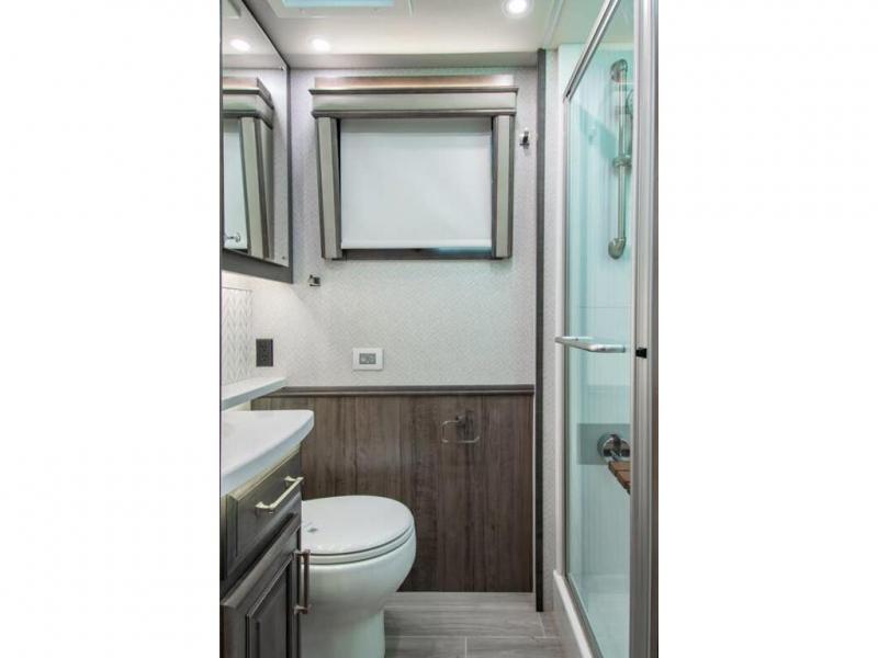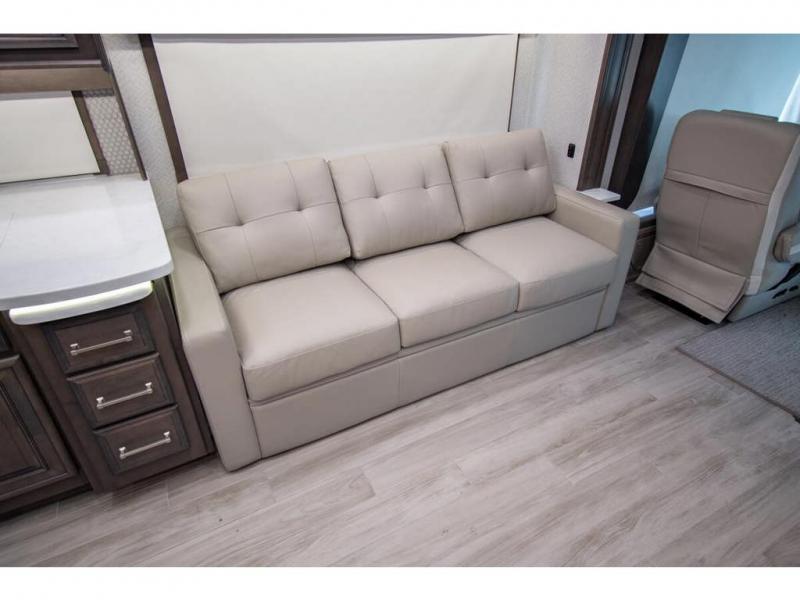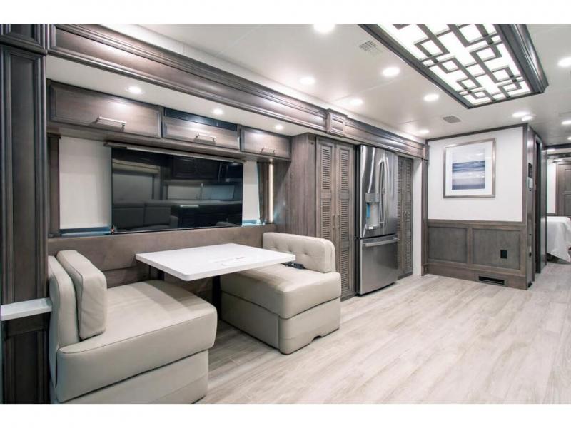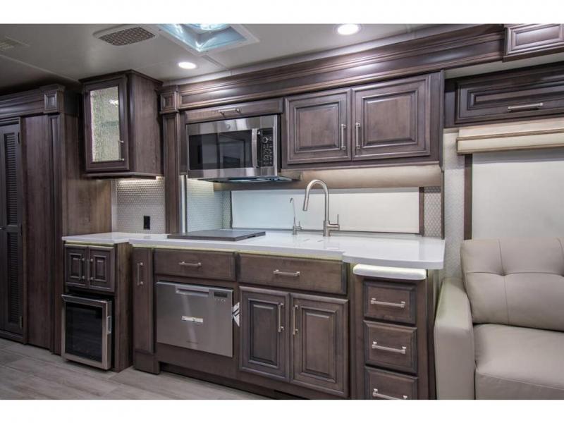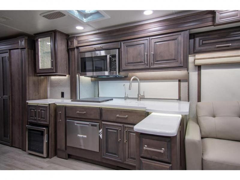 This RV rides on a Freightliner chassis and is powered by a Cummins® L9 turbocharged 450 HP engine with 1,250 lb.-ft. torque at 1,400 RPM and an Allison 3000 series transmission. This luxury bath & 1/2 bunk model diesel motor coach measures approximately 44 feet 11 inches in length and is backed by Entegra Coach's superior 2-Year/24K Mile Limited Coach & 5-Year Limited Structural Warranties. New for 2026 on the Aspire is the larger square-shaped windows with wood framed valances and a leather accent, LED strip lighting in bed base and under the sofa/dinette cabinets, upgraded tile work in the entry well, GE convection microwave with air fryer and larger Samsung Smart TV in the bedroom. Some of the standard features that really set the Entegra Aspire apart include the Valid 15” high brightness digital dash with quad core graphics processor and on-board diagnostics, Ramco 360° HD digital camera system, Aqua-Hot® 400D hydronic water and heating system with in-floor heat throughout, power tilt & telescoping steering wheel, Aqua View Showermi$er with “GREEN” technology saves fresh water, day and night shades throughout, solid-surface countertops with LED accent lighting, Girard window awnings & slide-out toppers, stainless steel refrigerator, Induction cook top with matching wood cover, LED marker and turn lights, DEF fill door, power rear engine door with push button control, Firefly multiplex system with 10” VegaTouch touchscreen for complete integration of coach controls, Victron MultiPlus II 120V 3000VA pure sine inverter system with 7" digital LED information system, water softener prep, (3) 15K BTU roof A/C units with heat pumps, heated floors, 50 amp power cord reel, power water hose reel, GPS navigation system, frameless dual pane & tinted windows, automatic hydraulic leveling system, central vacuum, LED TV in bedroom, automatic generator start, Splendide stack washer/dryer, removed carpet on all slide floors, 360 degree birds' eye view camera system, LED TV in cab and much more.