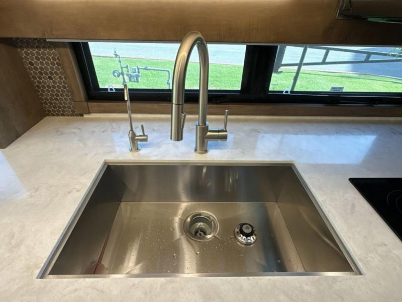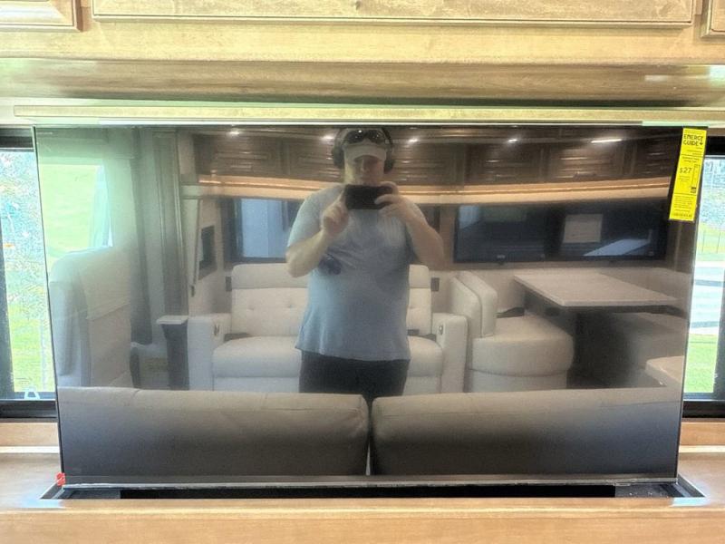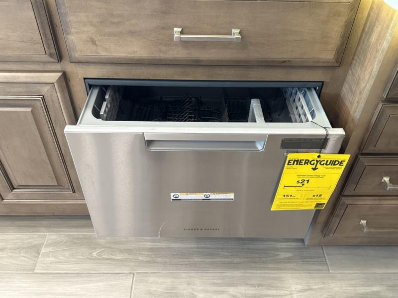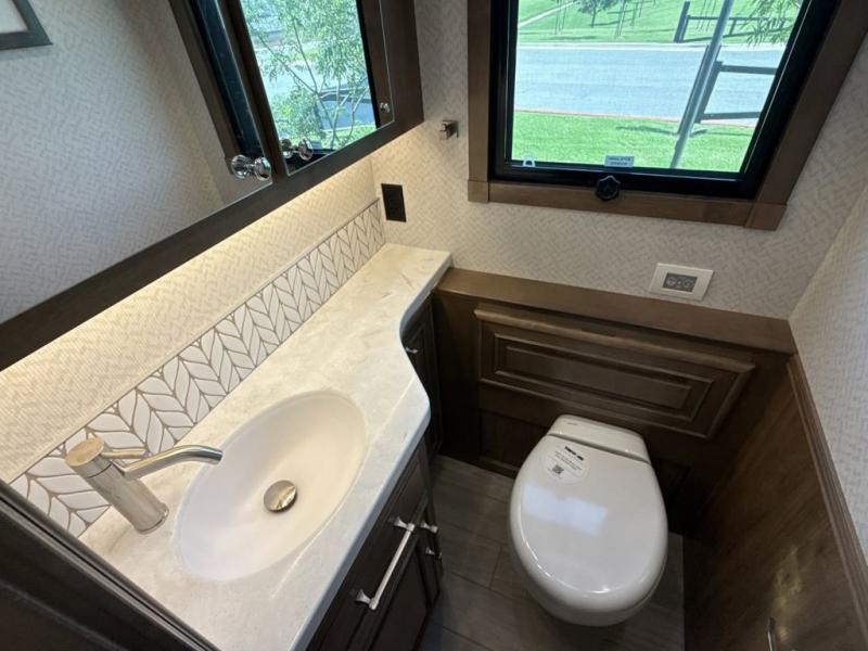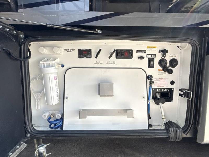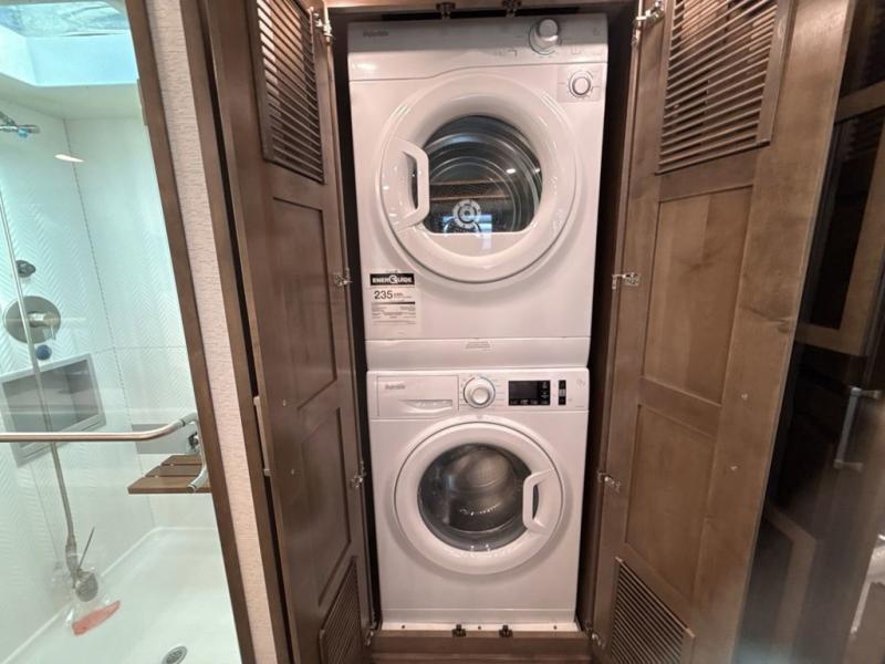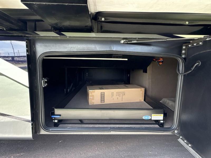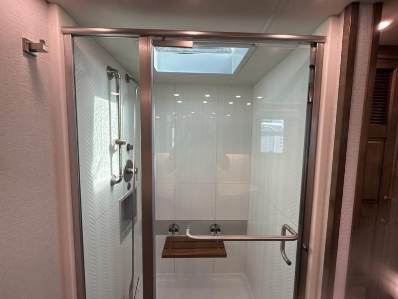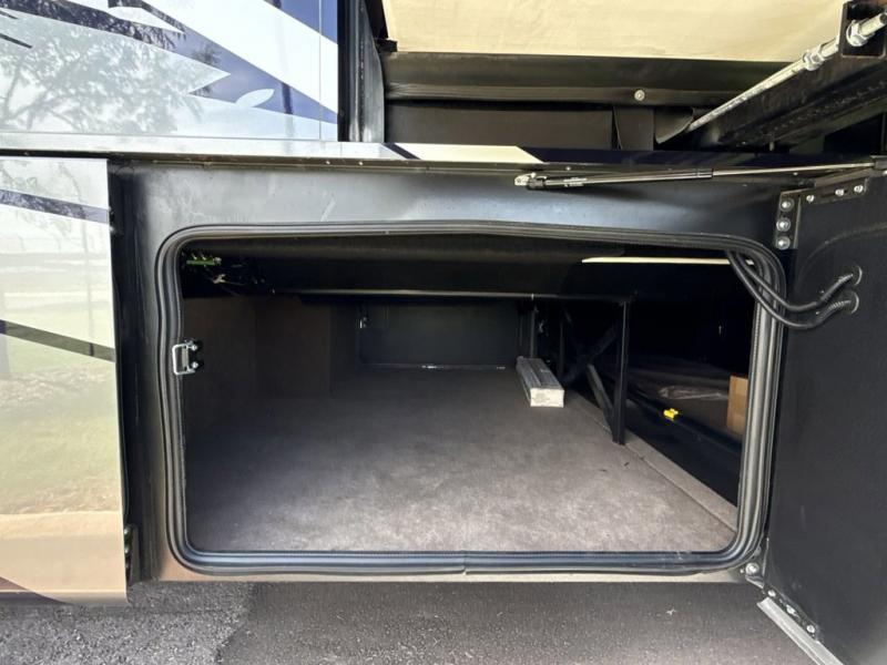 Create unforgettable memories in the comfort of this motorhome! Enjoy a refreshing time in the spacious rear bathroom where you will find a 36” x 23” shower, medicine cabinets, and a large wardrobe, perfect for organizing your best outfits, this unit also has a half bath adding convenience for those times when guests are around. The private bedroom boasts a wardrobe with drawers, a 43” TV and an ample king bed, great for a good night’s sleep. Cooking will be your favorite activity due to all the facilities this RV offers, like the residential refrigerator, pantry, microwave, overhead cabinets, and pantry for dry goods. A 74” hide-a-bed sofa is provided adding more sleep space and entertainment will continue outside thanks to the 43” TV.