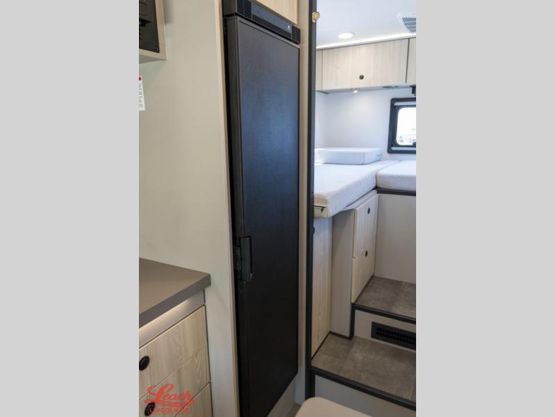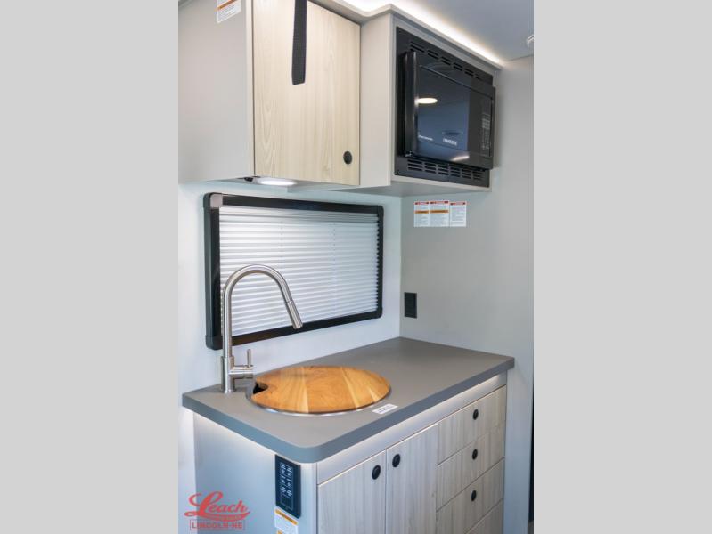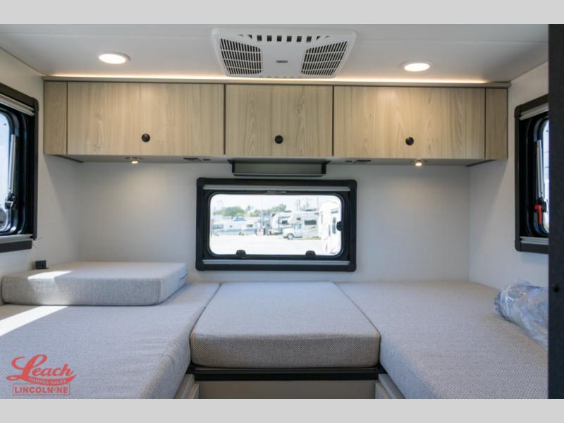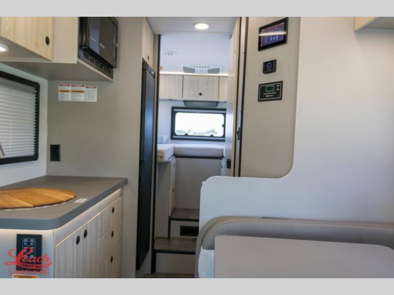 Pack your bags and load up the bikes in this all-wheel drive coach for two! Once you're parked for the day, you can swivel the seats around and relax with a cold drink. The kitchen includes everything you need to whip up a quick lunch, including an induction cooktop and a convection microwave, and the stainless steel sink will make clean up a breeze. There is a dinette lounge where you can dine at, or you might just sit outside in your camp chair under the 14' awning or optional 7' rear awning. There is even an outdoor kitchen option for added convenience! The wet bath includes a shower with a curtain surround, a medicine cabinet with a mirror, and an Aqua View Showermiser water management system. When you're ready to call it a night, you'll find twin beds with a king bed conversion, and there are dual wardrobes to keep your clothes tidy!