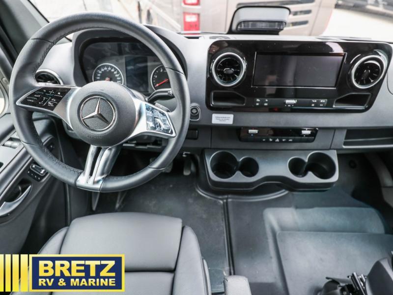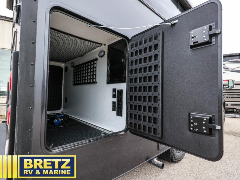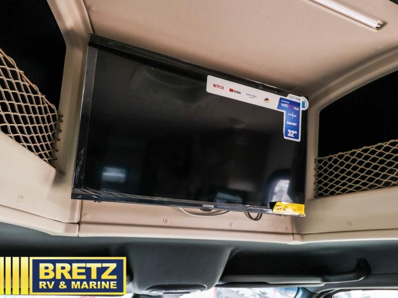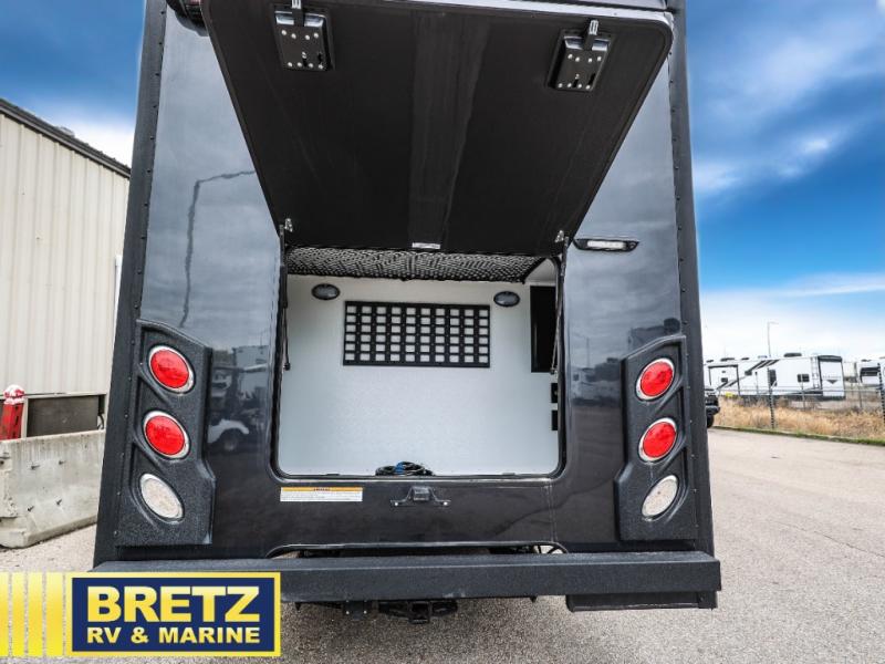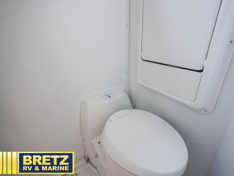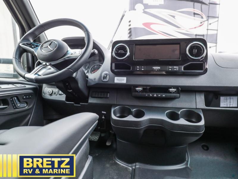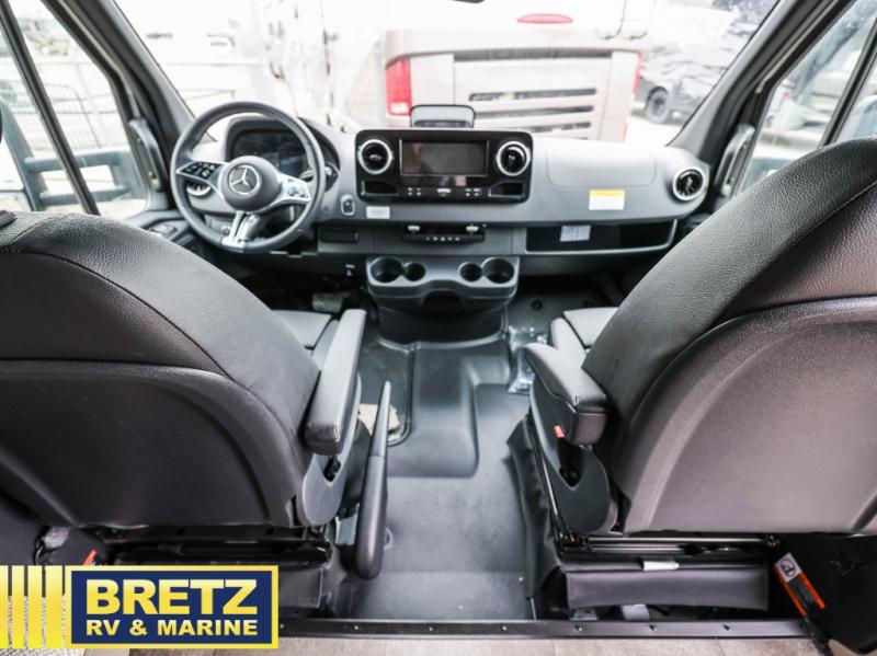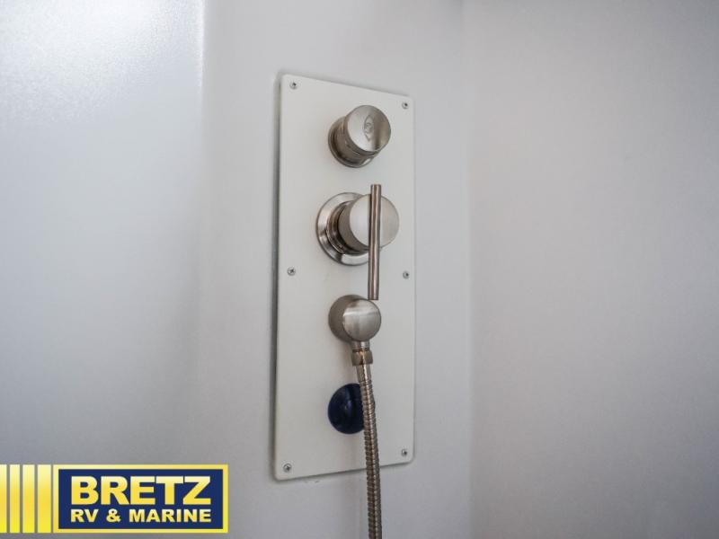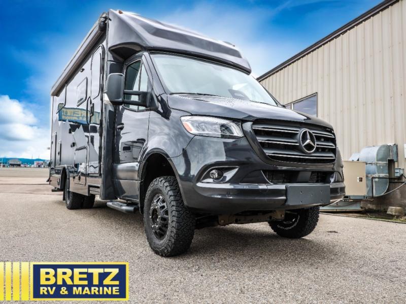 Pack your bags and load up the bikes in this all-wheel drive coach for two! Once you're parked for the day, you can swivel the seats around and relax with a cold drink. The kitchen includes everything you need to whip up a quick lunch, including an induction cooktop and a convection microwave, and the stainless-steel sink will make clean up a breeze. There is a bench seat with tables where you can dine at, or you might just sit outside in your camp chair under the 15' 6" awning or optional 7' rear awning. The wet bath includes a shower with a curtain surround, a medicine cabinet with a mirror, and an Aqua View Showermiser water management system. When you're ready to call it a night, you'll find twin beds with a king bed conversion, and there are dual wardrobes to keep your clothes tidy!
