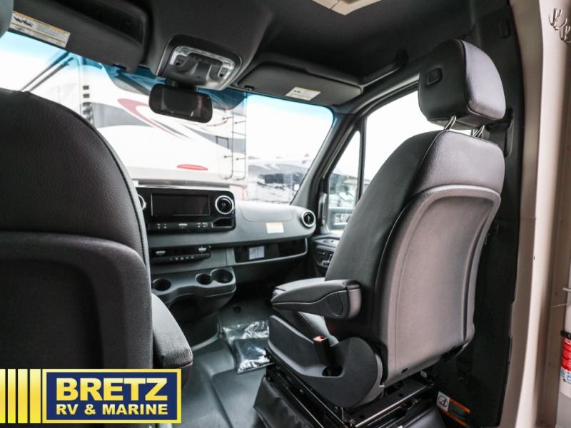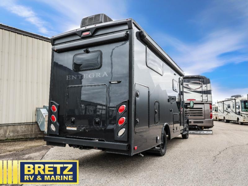 The extended season capable and rugged Condor Class C gas and diesel motorhomes by Entegra Coach are ready for adventure! Not only does this coach feature durable TuffShell construction, but it also sits on an all-wheel drive chassis; a Ford Transit on 22T and a Mercedes-Benz on 23S, allowing you to explore more roads! The backup camera will make it easier than ever to maneuver your Condor in the city or at the campground, and you'll appreciate the infotainment system for all your entertainment needs. Inside, there is residential vinyl flooring, cassette screens and night shades, soft-close cabinet doors and drawers, and pressed kitchen countertops. An Aqua View Showermiser water management system helps conserve water and the hydronic heating system with LED touchscreen control will provide all-around comfort. There is also a 3.9kWh 12V lithium battery, along with a 2,000W inverter and a 360W roof-mounted solar panel to keep your adventures going!