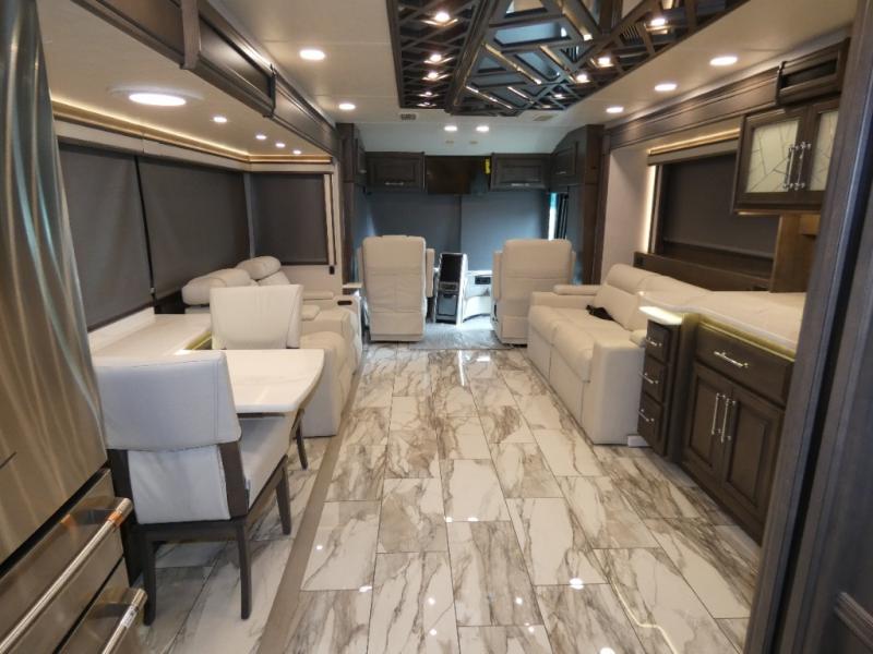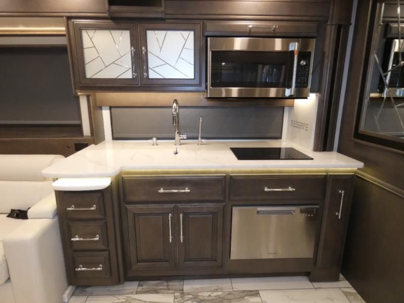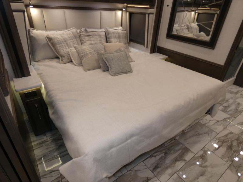 Each Cornerstone Class A diesel motorhome by Entegra Coach is packed with luxury features to make each trip memorable! The Spartan K3 raised-rail chassis provides a strong foundation, and the Cummins 605 HP engine can power your many excursions. You will appreciate the collision avoidance system with collision warning, adaptive cruise control, and electronic stability control, plus there are six HD cameras included in the surround view system for easy maneuvering in and out of campgrounds. The interior is designed to make you feel at home with premium leather Crown Compass furniture, hand-laid porcelain tiled floors, a Personal Comfort A5 king-size mattress, and many more residential features. The luxury-packed amenities don't stop there! Outside you'll find a heated exterior utility center, two power slide out basement storage trays, (2) 200W solar panels, and hot and cold water hook-up in the front cap area with a 30 ft. quick-disconnect hose so you can easily keep the front of your unit clean!