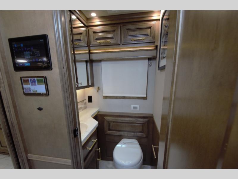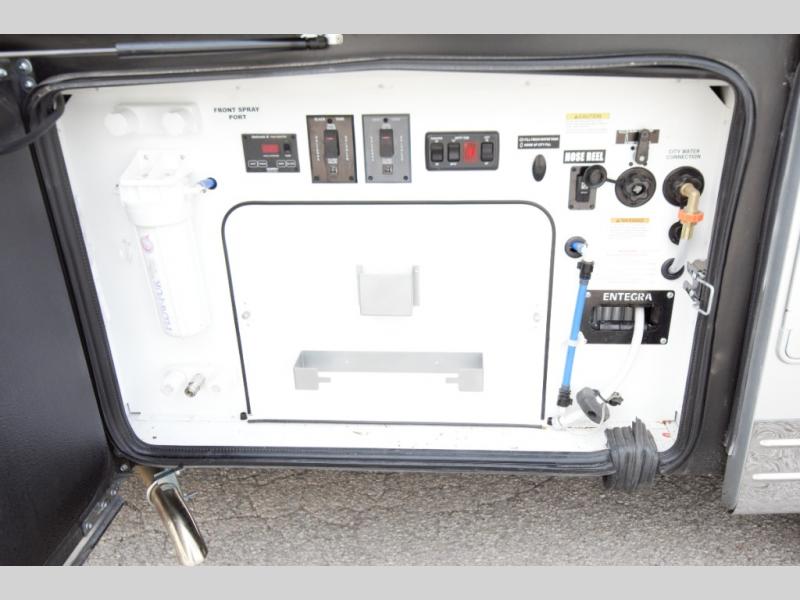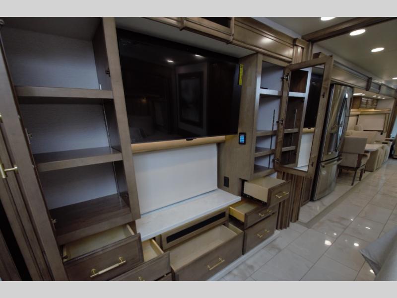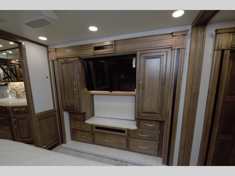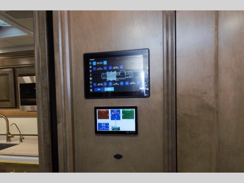 The 2026 Cornerstone 45V is loaded with Entegra’s integrated smart coach systems, including the VegaTouch interface for controlling lights, HVAC, shades, and more from a tablet or smartphone. Enjoy a full suite of entertainment options with premium audio, multiple TVs, and satellite prewiring.
