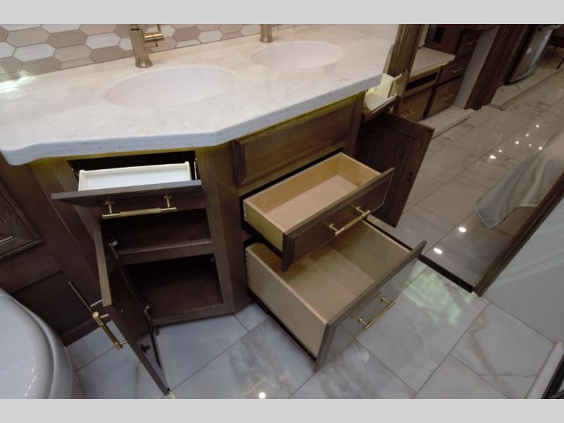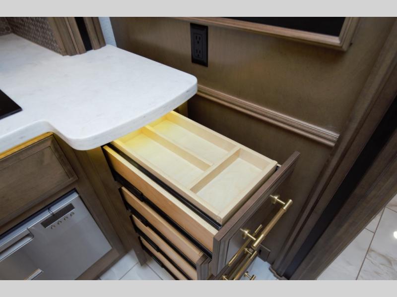 With massive basement storage, sliding cargo trays, and smart interior layout solutions, the 45V provides room for everything you need—and more. Every detail is designed for maximum convenience, from soft-close drawers to motion-sensor lighting.
