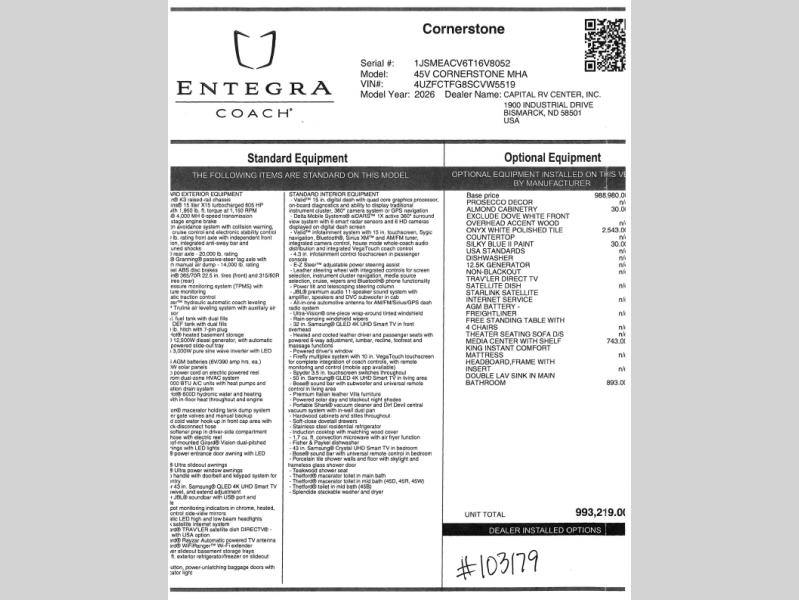 The 2026 Entegra Coach Cornerstone 45V is not just a motorhome—it’s a rolling masterpiece designed for those who seek world-class luxury and performance on every journey. Visit Capital RV today and step inside a new era of motorcoach travel. Your dream lifestyle is waiting—are you ready to take the wheel?