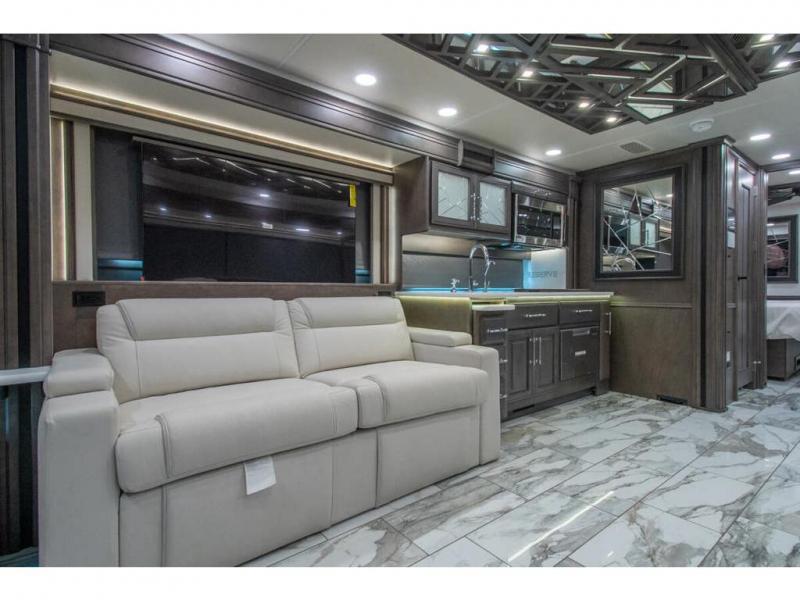 MSRP $1,152,220 All New 2026 Entegra Cornerstone Reserve Model 45D Bath & 1/2 is approximately 44 feet 11 inches in length and rides on a Spartan K3 tag axle chassis with IFS featuring Entegra’s exclusive X-Bridge framing, powered by a Cummins 15-liter ISX turbocharged 605HP engine 1,950 lb. ft. torque at 1,150 RPM, an Allison 4000 series transmission and is backed by Entegra Coach's superior 2-Year/24K Mile Limited Coach & 5-Year Limited Structural Warranties. The Reserve features new and unique features including modern larger square framed windows in living quarters, windows are wood framed with leather-accented valances and LED strip lights, kitchen window backsplash is quartz with an etched "Reserve" name, quartz countertops and backsplashes throughout, GE Cafe series refrigerator and microwave with air fryer, stunning villa "Reserve" furniture featuring power head rest with tilt, The driver and passenger seats are embossed with the reserve logo, soft-close dovetail drawers, bedroom picture with the "Reserve" unit's limited edition number, interior entrance grab handle with stitched reserve name and Kohler Neuroc kithcne sink with a matte finish. The paint on the Reserve features a new unique and custom design that features image ghosting that shows a different look based on the angle you are looking at this beautiful RV. It is achieved by eight pearl paint topcoat colors and nine coats of clearcoat. Optional equipment on this RV includes the Black Diamond blackout package, double sink in main bath, Garmin 10" RV navigator GPS system, Lithionics lithium batteries, Spartan chassis and living room area rug. A few of the impressive standards include electronic stability control, Equalizer™ hydraulic automatic coach leveling, Valid truline air leveling system, remote air connection, Onan® 12,500-watt diesel generator, with automatic start, on powered slide-out tray, Aqua-Hot® 600D hydronic water and heating system with in-floor heat throughout and engine preheat, Dual roof-mounted Girard® Vision dual-pitched patio awnings with LED lights, Girard® Ultra slideout awnings, Exterior freezer/refrigerator on slideout tray, Starlink satellite internet system, Winegard WiFiRange Wifi extender, rear mudflap with chrome nameplate, Collision avoidance system with collision warning, adaptive cruise control and electronic stability control, Bergstrom dual-zone HVAC system, Heated and cooled leather driver and passenger seats with powered 6-way adjustment, lumbar, recline, footrest and massage functions, Ultra-Vision® one-piece wrap-around tinted windshield; Rain-sensing windshield wipers, Firefly multiplex system with 10 in. VegaTouch touchscreen for complete integration of coach controls, premium leather villa furniture, Portable shark vacuum cleaner, dirt devil central vacuum system, stackable washer/dryer, Fisher & Paykel dishwasher and much more. **Unit Not California CARB Compliant and Cannot be Registered in California**. Shop a huge selection of luxury diesel pusher motorhomes all at 1 location! Choose from American Coach Eagle – Dream – Entegra Coach Cornerstone – Anthem – Aspire – Fleetwood Palisade – Discovery LXE – Holiday Rambler Armada – Foretravel Realm – Foretravel Realm Presidential and more. We also buy and sell quality pre-owned models such Newmar King Aire – Essex – London Aire – Mountain Aire – Dutch Star - Tiffin Zephyr – Allegro Bus – Phaeton – Prevost Liberty Lady – Millennium - Marathon – Newell and much more. Visit MHSRV.com for our complete line-up and the sale prices that have made us the #1 volume selling motor home dealership in the world 12 years in a row! For additional details on this unit and our entire inventory including brochures, window sticker, videos, photos, reviews & testimonials as well as additional information about Motor Home Specialist and our manufacturers please visit us at MHSRV.com or call 800-335-6054. At Motor Home Specialist, we DO NOT charge any prep or orientation fees like you will find at other dealerships. All sale prices include a 200-point inspection, interior & exterior wash, detail service and a fully automated high-pressure rain booth test and coach wash that is a standout service unlike that of any other in the industry. You will also receive a thorough coach orientation with an MHSRV technician, a night stay in our delivery park featuring landscaped and covered pads with full hook-ups and much more! Read Thousands upon Thousands of 5-Star Reviews at MHSRV.com and See What They Had to Say About Their Experience at Motor Home Specialist. WHY PAY MORE? WHY SETTLE FOR LESS?