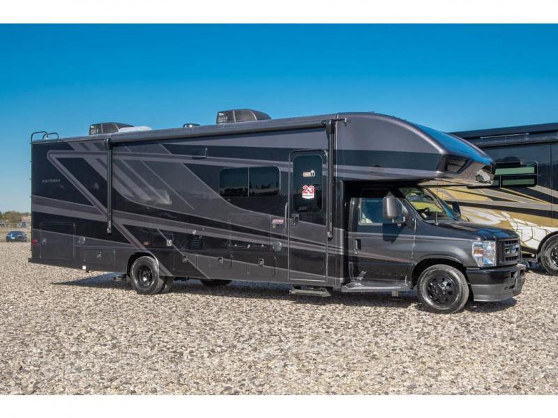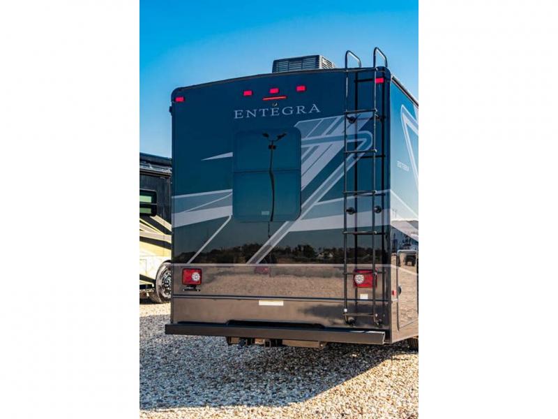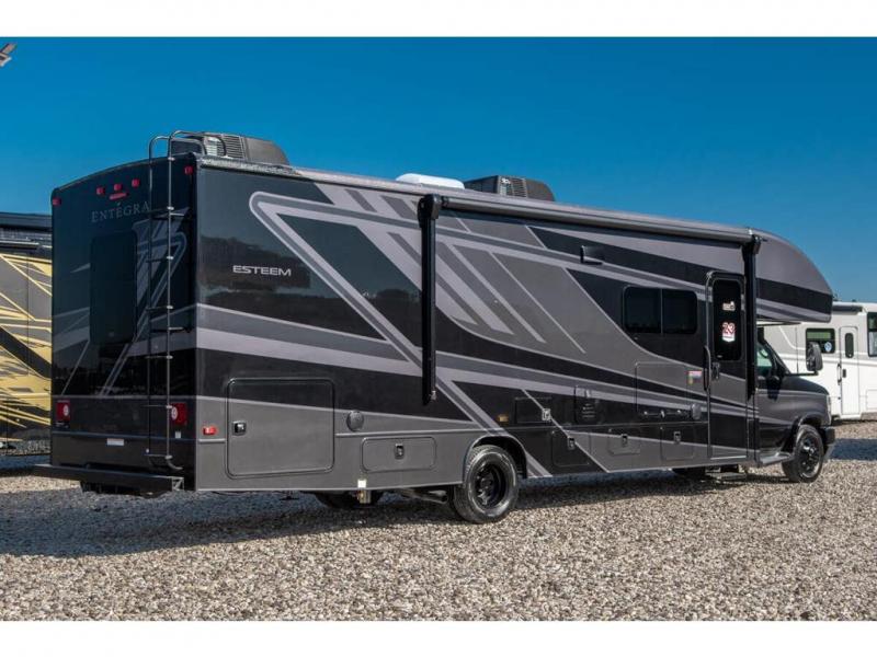 Make one of these Entegra Coach Esteem Class C gas motorhomes your own! The interior design includes solid-surface countertops that pair well with the many technological upgrades. The fully custom-molded ABS surround in the cab area features its signature panoramic window and power shade for a beautiful view while you drive and provide privacy at night. They also come with E-Z Drive Elite which has a computer-balanced driveshaft, Koni FSD shocks, Hellwig helper springs, and a heavy-duty rear stabilizer bar for a smooth ride. Automatic leveling jacks will make set-up a breeze and the electric awning with LED lights will create an outdoor living space where you can relax after unpacking. Inside, you'll enjoy hardwood cabinet doors and drawer fronts, blackout night roller shades, and high-intensity recessed LED ceiling lights to keep your space well lit. There is also a JBL audio system and a BMPRO total coach control system to easily manage your unit's functions!