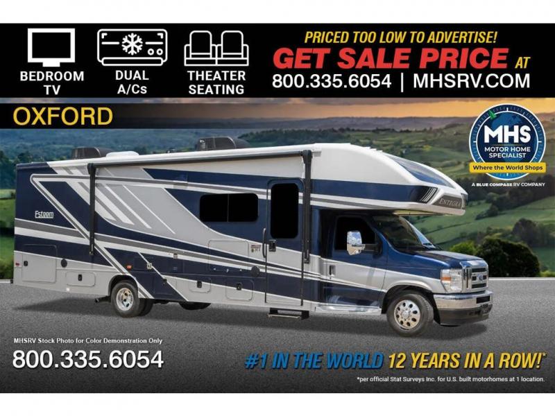 Enjoy a home on wheels with this motorhome! The rear private bedroom has a 60" x 74" queen bed slide to lay your head on at night and dual wardrobes opposite to keep your clothes looking their best. Add the optional TV if you enjoy watching a movie in bed. The separated bathroom makes it easy for one person to freshen up in the 30" x 36" shower while another uses the private toilet and sink. Prepare your best home cooked meals with the Furrion all-in-one cooktop and oven then enjoy them at the booth dinette. The tri-fold sofa offers a comfortable place to relax but it can be switched out for the an optional theater sofa instead. There is also a bunk over cab for more to join in on the fun!