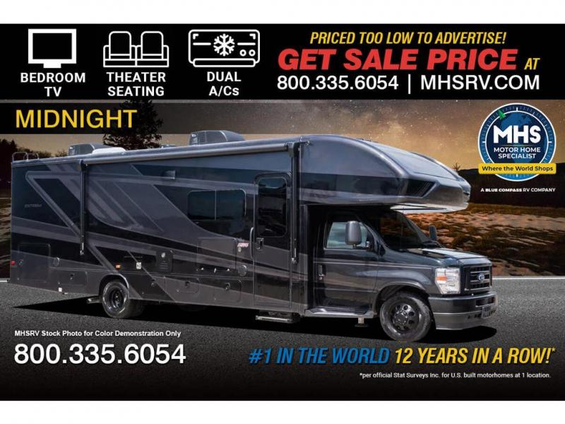 Enjoy a home on wheels with this motorhome! The rear private bedroom has a 60" x 74" queen bed slide to lay your head on at night and dual wardrobes opposite to keep your clothes looking their best. Add the optional TV if you enjoy watching a movie in bed. The separated bathroom makes it easy for one person to freshen up in the 30" x 36" shower while another uses the private toilet and sink. Prepare your best home cooked meals with the Furrion all-in-one cooktop and oven then enjoy them at the booth dinette. The tri-fold sofa offers a comfortable place to relax but it can be switched out for the an optional theater sofa instead. There is also a bunk over cab for more to join in on the fun!