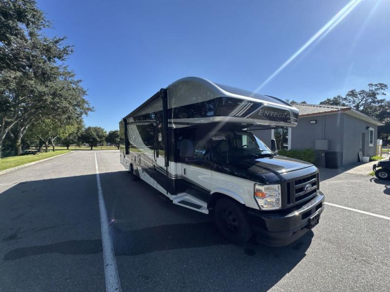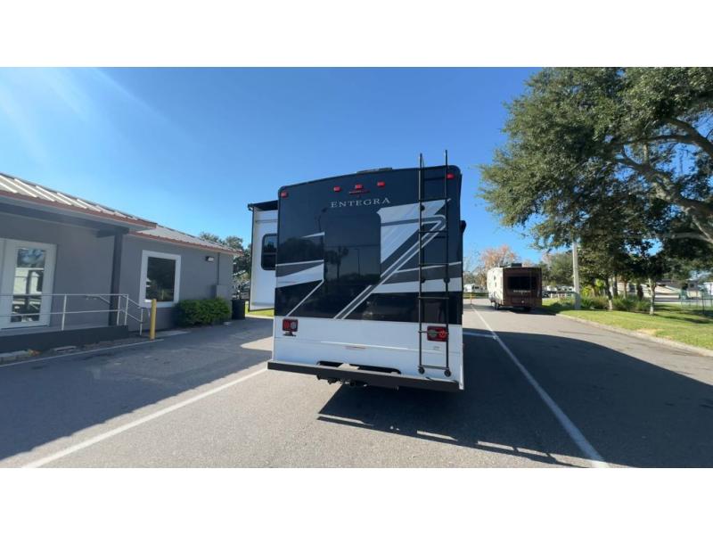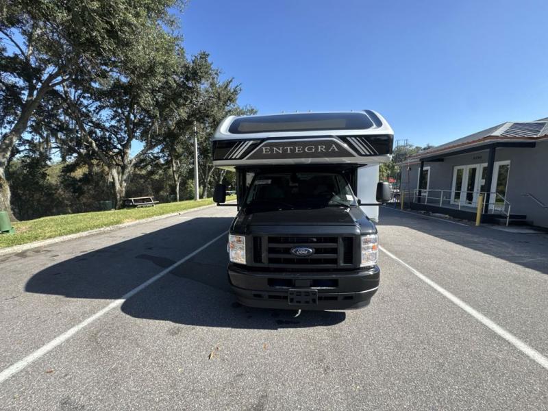Make one of these Entegra Coach Esteem Class C gas motorhomes your own! The interior design includes solid-surface countertops that pair well with the many technological upgrades. The fully custom-molded ABS surround in the cab area features its signature panoramic window and power shade for a beautiful view while you drive and provide privacy at night. They also come with E-Z Drive Elite which has a computer-balanced driveshaft, Koni FSD shocks, Hellwig helper springs, and a heavy-duty rear stabilizer bar for a smooth ride. Automatic leveling jacks will make set-up a breeze and the electric awning with LED lights will create an outdoor living space where you can relax after unpacking. Inside, you'll enjoy hardwood cabinet doors and drawer fronts, blackout night roller shades, and high-intensity recessed LED ceiling lights to keep your space well lit. There is also a JBL audio system and a BMPRO total coach control system to easily manage your unit's functions!