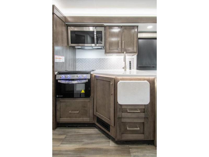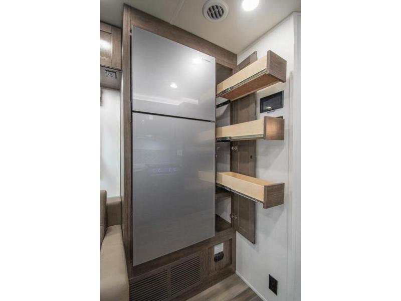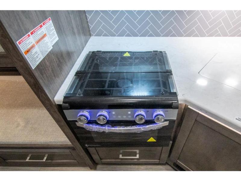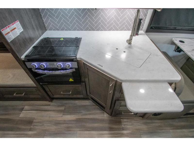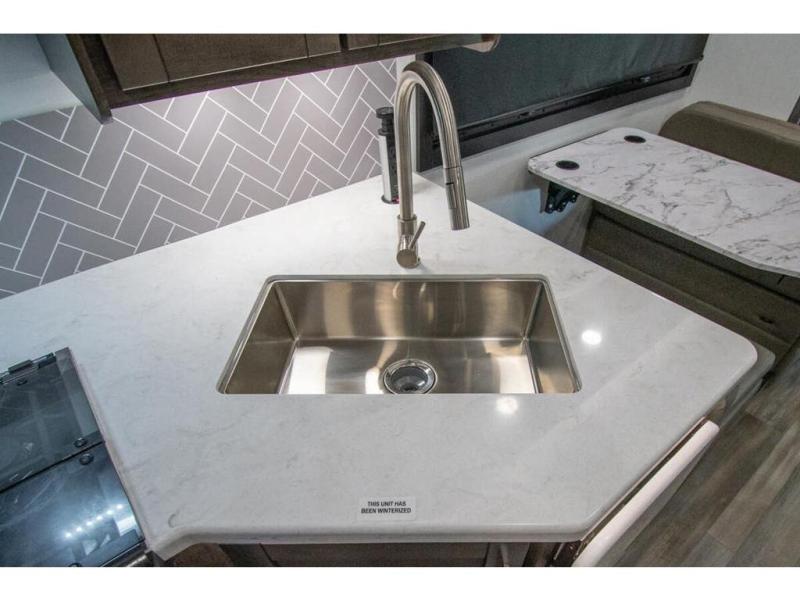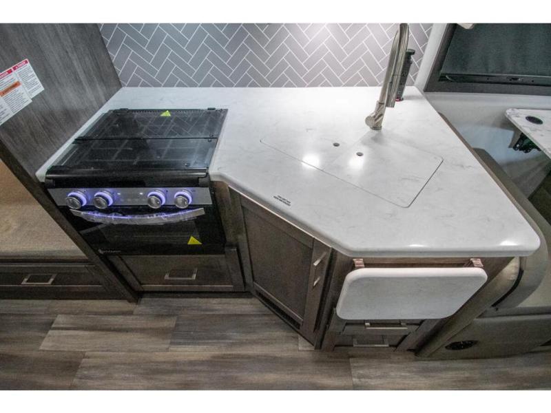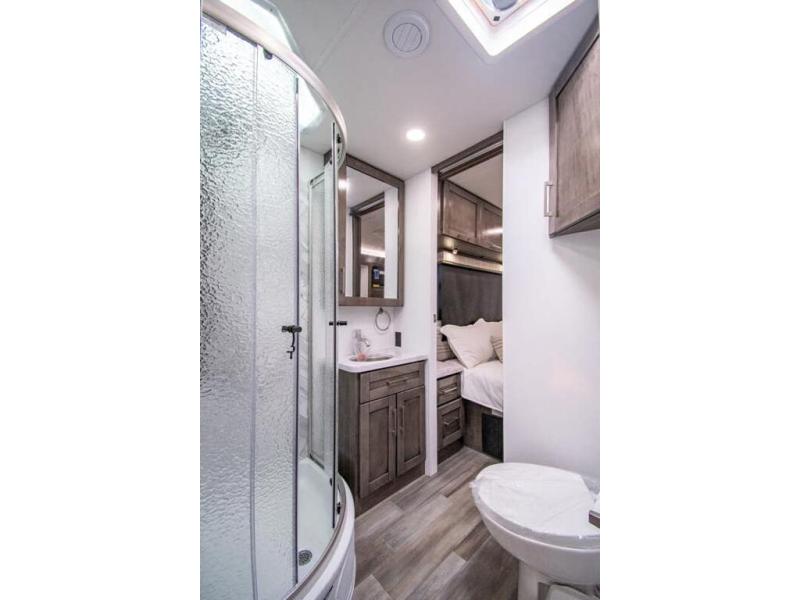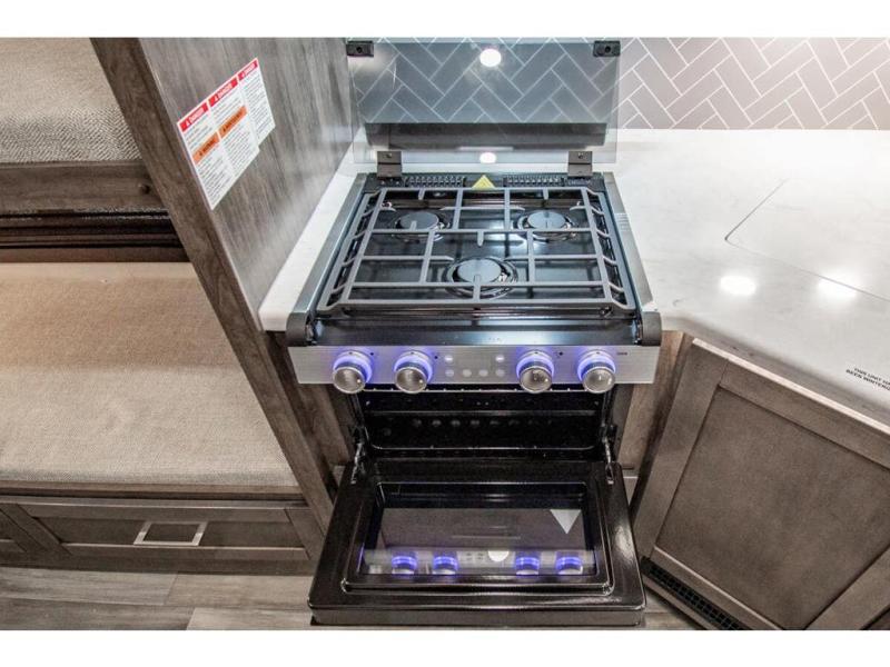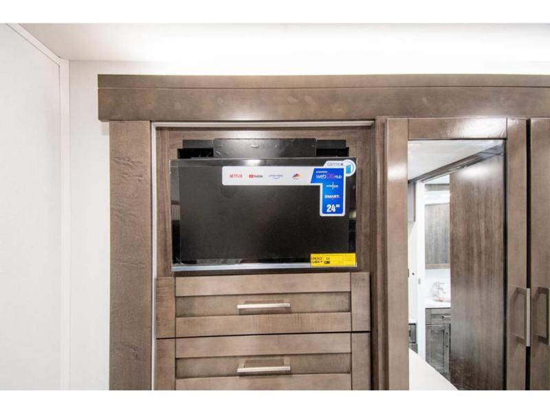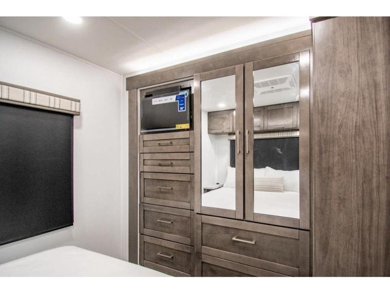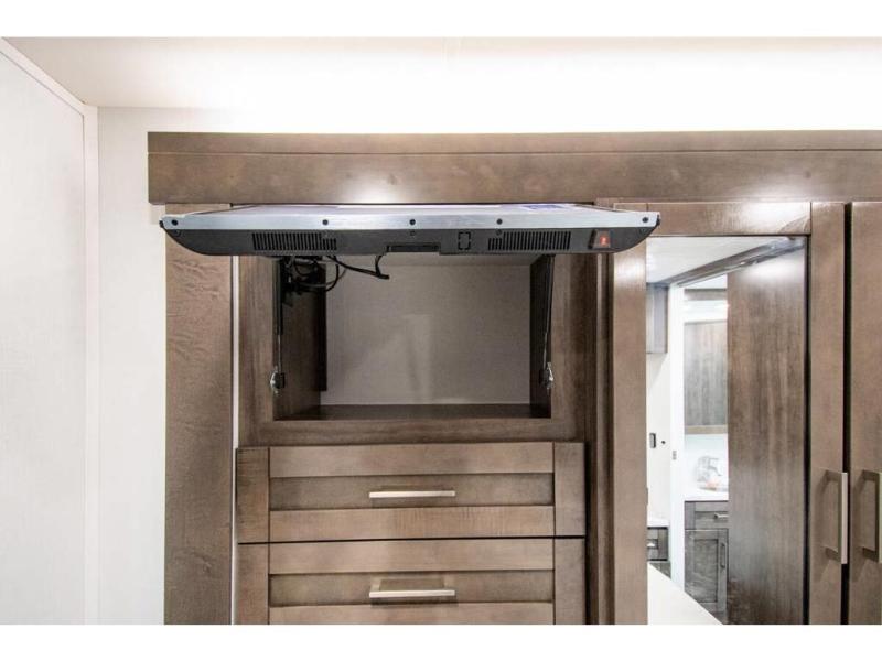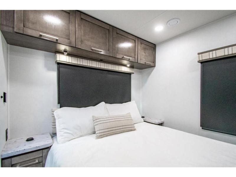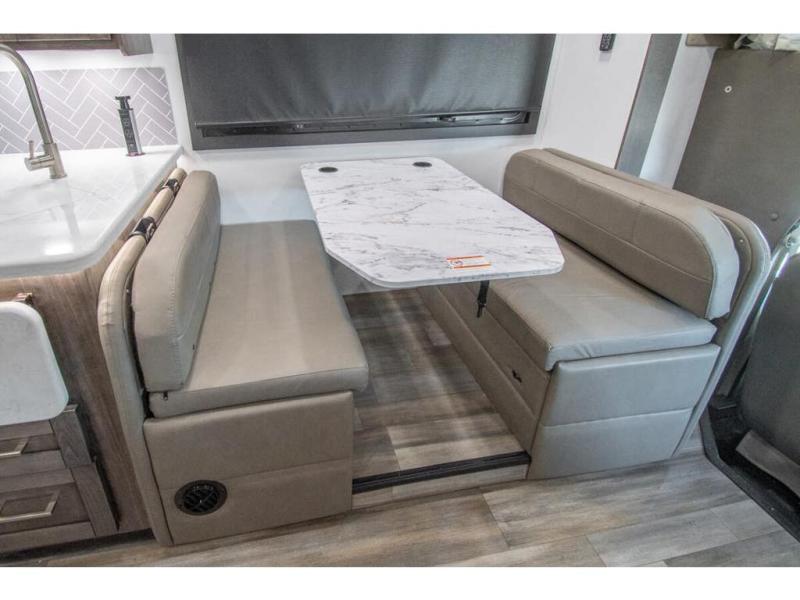 The whole family can travel together in this motorhome! The kiddos can sleep on the set of bunk beds with tablet holders and you can sleep on the 60" x 74" queen bed in the rear private bedroom. Everyone can easily access the dual entry bathroom to freshen up in the 32" radius shower each morning. Cook up delicious meals on the Furrion all-in-one cooktop, then head to the booth dinette which can also transform into an extra sleeping space. You can take an afternoon nap on the sofa or head outdoors to watch the big game at the exterior LED HD Smart TV underneath the 18' electric awning with LED lights to highlight the good times!