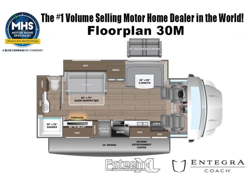 MSRP $209,410. The Ultimate in Compact Luxury Motor Homes is Here! Introducing the new 2026 Entegra Coach Esteem with features including new full body paint exteriors. Now you and your family can enjoy the exceptional craftsmanship, premier drive and even Entegra Coach's industry leading 2-Year Limited, 5-Year Structural, Transferable Warranty! This beautiful RV also features the optional full body paint, customer value package, blackout package, bedroom TV, theater seating sofa, dual A/C and sun folding windshield shade! The exclusive E-Ride LX Handling Package found in the Esteem boast a computer-balanced driveshaft, an oversized stabilizing bar, Bilstein shocks, rubber isolation mounts and Hellwig L-35 helper springs for incomparable drivability. The Entegra is the only class C on the market to minimize "road fatigue" through construction and materials. The standard features list is nothing short of extraordinary including a one-piece seamless molded fiberglass front cap with fiberglass wings, an automotive and bonded panoramic front window with power black-out interior shade and a full aluminum front cab-over cage for superior strength and coach integrity. Additional construction and feature highlights include a one-piece fiberglass roof, frameless and tinted windows, total in-house water filtration system, a dream dinette™, a full cab-over bunk with an incredible 750-lb. rating, automotive design ABS molded front sleeper compartment with integrated cup holders, cab-over entertainment center, bedroom TV, pillow top mattress, stainless steel appliances, an inverter, automatic one touch leveling, solid hardwood cabinet doors with hidden hinges, full extension drawer guides, frame mounted seatbelts (sofa and both dinette benches), residential full vinyl flooring with no ducts (all ducts installed in toe kicks), stainless exterior trim package, solid surface kitchen counter and slide-out counter extension in select floor plans, solid surface sink covers, chrome exterior mirrors with integrated side-view cameras, extra large fiberglass running boards and TuffShell™ vacuum bonded lamination process in sidewalls, roof, and floor. The R-7 high density bead foam insulation will keep the Entegra far better insulated and quieter inside as well. Electro-Galvanized Steel backers are utilized within the walls as anchor points for superior structural integrity. Structurwood™ Decking is utilized in the floors to eliminate creaking. Other unique features include thick insulated compartment doors, a slide-out battery tray, one-piece Roto-Cast baggage compartments, heat pads for holding tanks, a lighted step well with electric entrance steps, a power awning with LED light strip, energy efficient LED ceiling lights, fully ducted and even air flow throughout the coach and an Energy Management System. Shop hundreds of class C gas RVs at 1 location! Choose from Fleetwood Altitude - Gulf Stream BT Cruiser - Thor Chateau - Four Winds - Geneva and Quantum - Entegra Coach Odyssey Odyssey SE and Esteem - East to West Entrada - Forest River Forester - Forester LE - Nexus Phantom - Viper and much more. We also sell quality pre-owned models such as Jayco Greyhawk – Redhawk - Redhawk SE - Thor Magnitude - Winnebago Spirit - and Minnie Winnie - Coachmen Freelander and Leprechaun - Forest River Sunseeker Classic - Sunseeker LE – Solera - Holiday Rambler Incline and much more. Visit MHSRV.com for our complete line-up and the sale prices that have made us the #1 volume selling motor home dealership in the world 12 years in a row! For additional details on this unit and our entire inventory including brochures, window sticker, videos, photos, reviews & testimonials as well as additional information about Motor Home Specialist and our manufacturers please visit us at MHSRV.com or call 800-335-6054. At Motor Home Specialist, we DO NOT charge any prep or orientation fees like you will find at other dealerships. All sale prices include a 200-point inspection, interior & exterior wash, detail service and a fully automated high-pressure rain booth test and coach wash that is a standout service unlike that of any other in the industry. You will also receive a thorough coach orientation with an MHSRV technician, a night stay in our delivery park featuring landscaped and covered pads with full hook-ups and much more! Read Thousands upon Thousands of 5-Star Reviews at MHSRV.com and See What They Had to Say About Their Experience at Motor Home Specialist. WHY PAY MORE? WHY SETTLE FOR LESS?