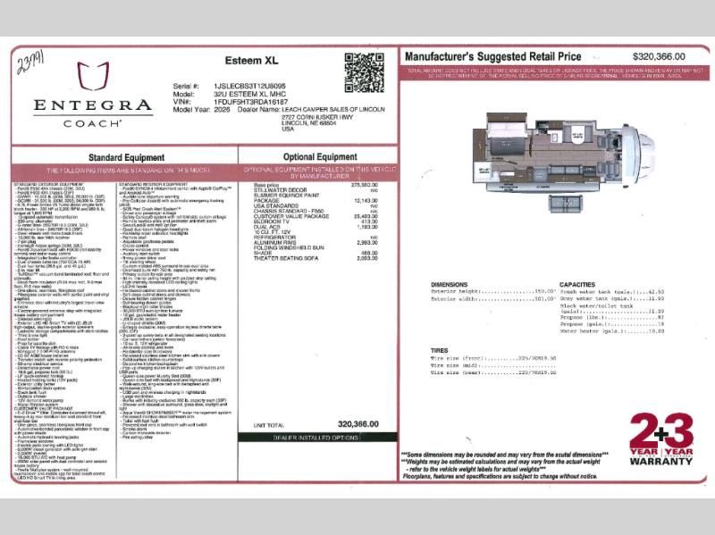 | Awning Info | 20' Electric with LED Lights |
