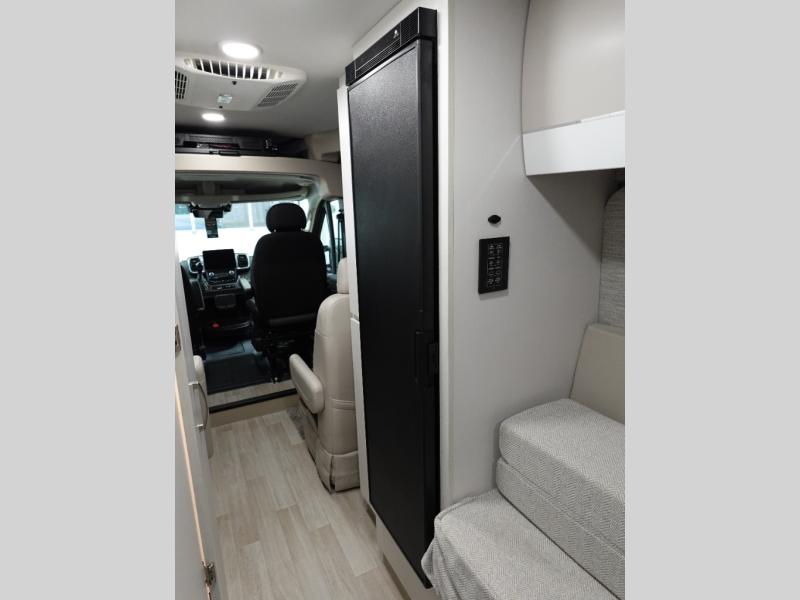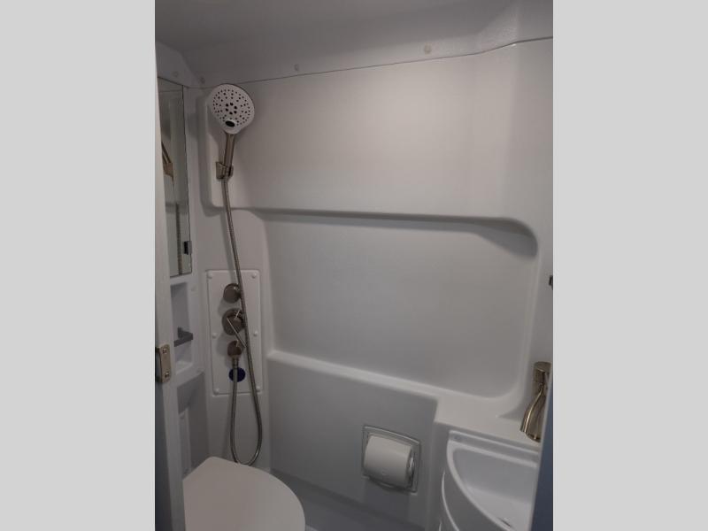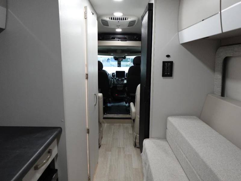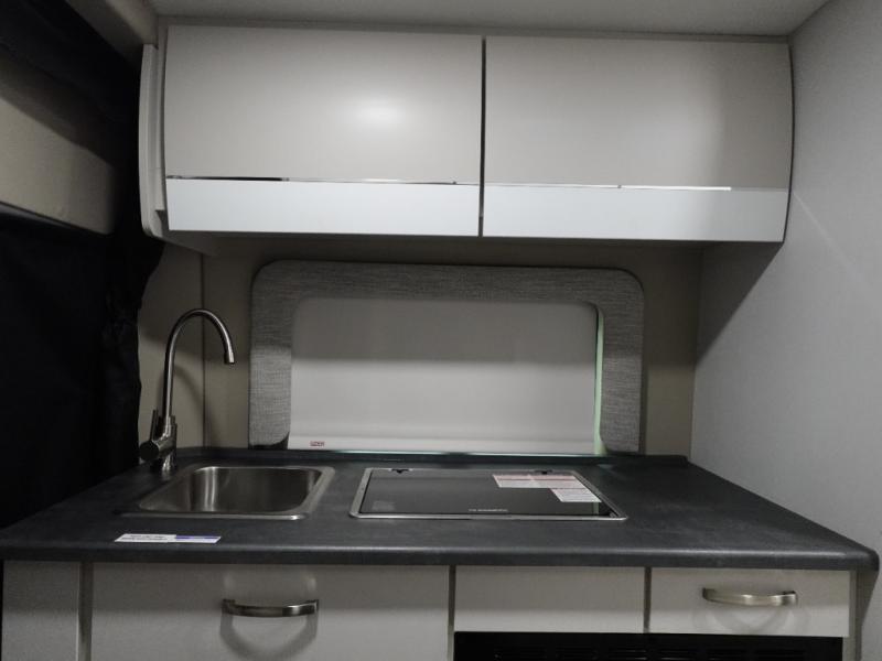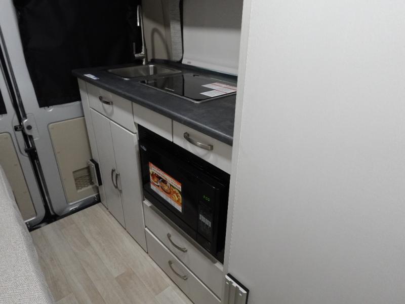 Enjoy day trips with friends or overnight stays at your favorite campground with your honey in this cozy motorhome. You will find swivel captain seats, plus two additional cab bucket seats for ride-along friends. The sofa in the back can convert to a 48" x 76" extended bed when you need a rest, and there is a cab TV to watch a movie. If you're needing additional sleeping space, just add the optional pop-top with a 50.5" x 79.5" sleeping space! The kitchen is equipped with everything you need to prepare meals each day, including a stainless steel sink, a convection microwave, and a 5.3 DC refrigerator for perishables. This model includes a convenient wet bath with a medicine cabinet with a mirror, a powered roof vent, plus an Aqua View Showermiser water management system you are sure to appreciate. The optional Li Package can be added which includes a 48V-165 amp hour smart lithium battery, providing 7.9KW hours of power, and more; see model 20AL for more details!