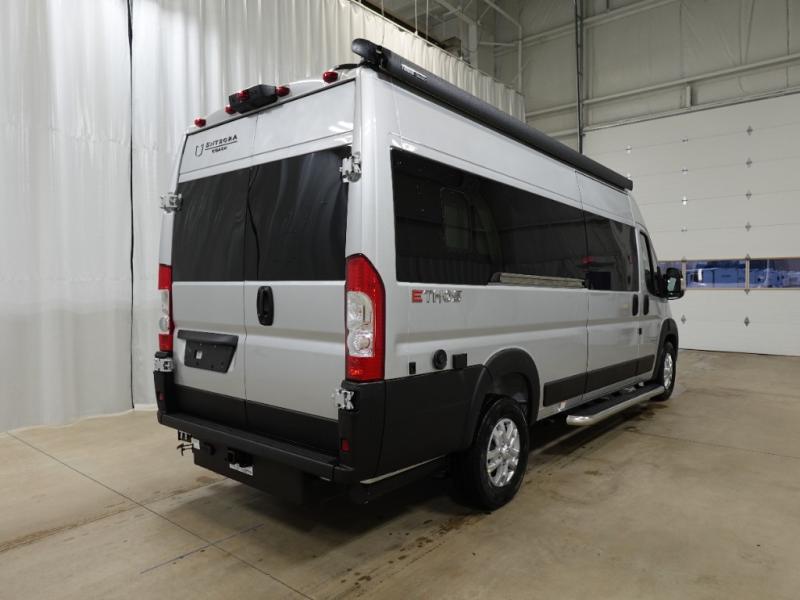 With any Ethos Class B gas motorhome by Entegra you will find helpful technology features, luxury amenities, and a smooth drive thanks to the E-Z Drive system. The 3.6L V6 24V VVT 276HP engine will power your trips near and far, plus there is an 2800-watt gas generator on board and a 1,000-watt inverter. Each model also includes a Truma Combi Eco Plus water heater and furnace, a 13,500 BTU A/C, a water filtration system, plus many more convenient systems. A Uconnect 5 NAV infotainment center comes standard, along with a backup camera and a cab area privacy shade. You'll be traveling in luxury with residential vinyl flooring, European-style high-gloss cabinetry, a soft-touch vinyl celling, and pressed countertops. Start a new adventure today in an Ethos Class B gas motorhome today!