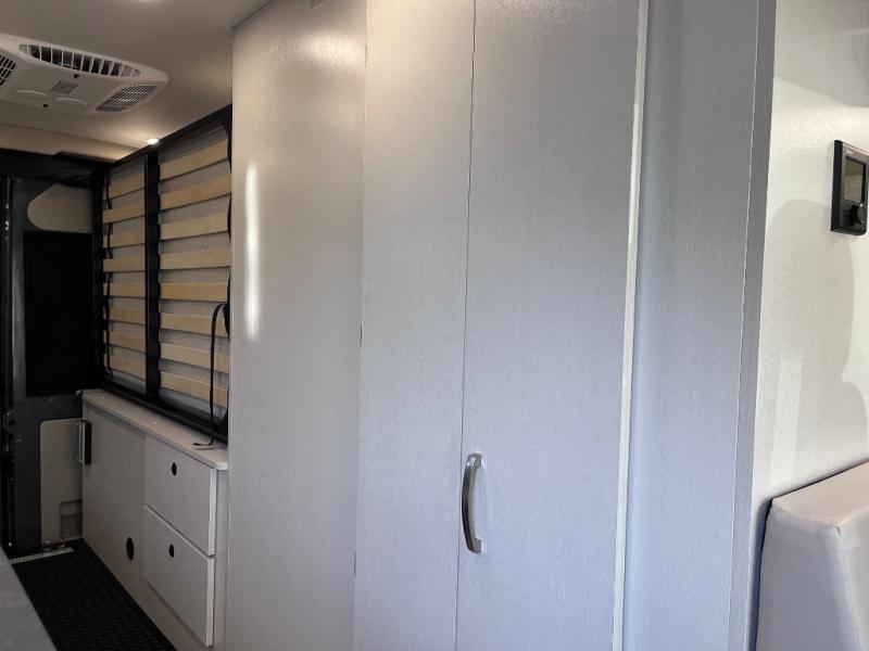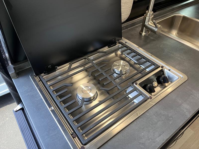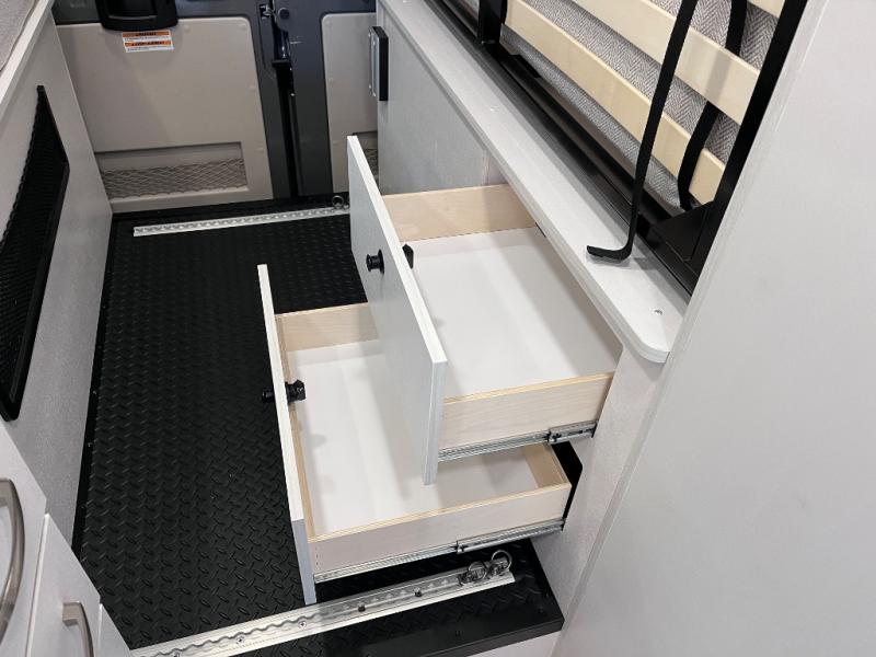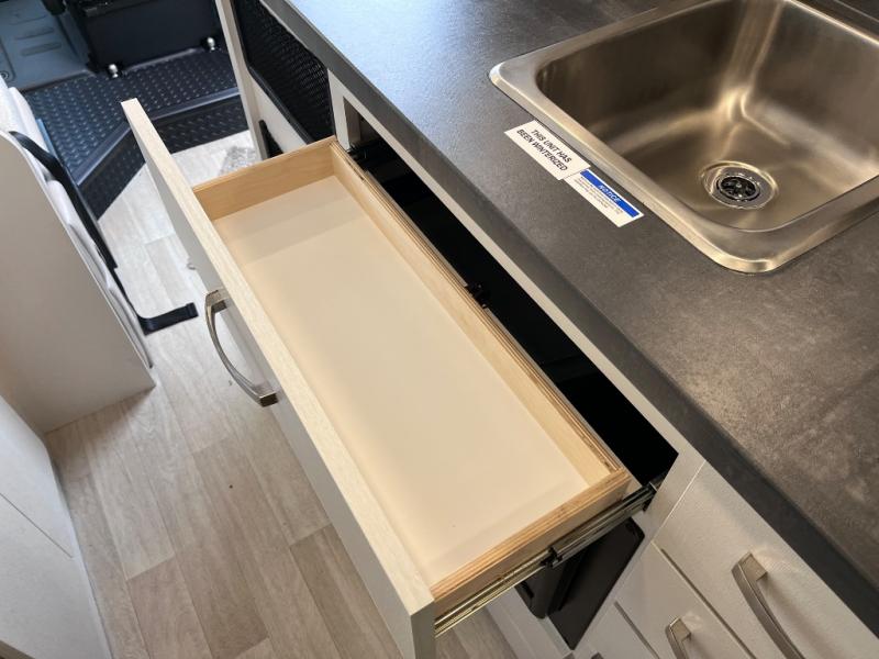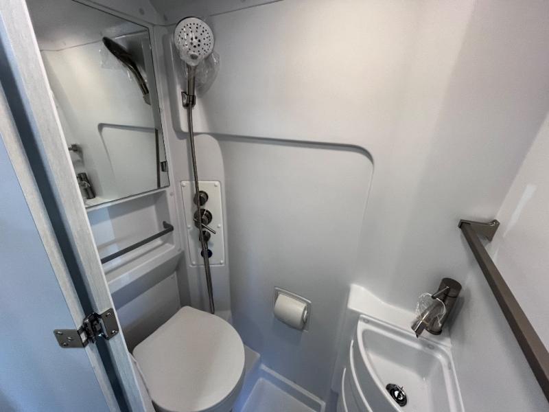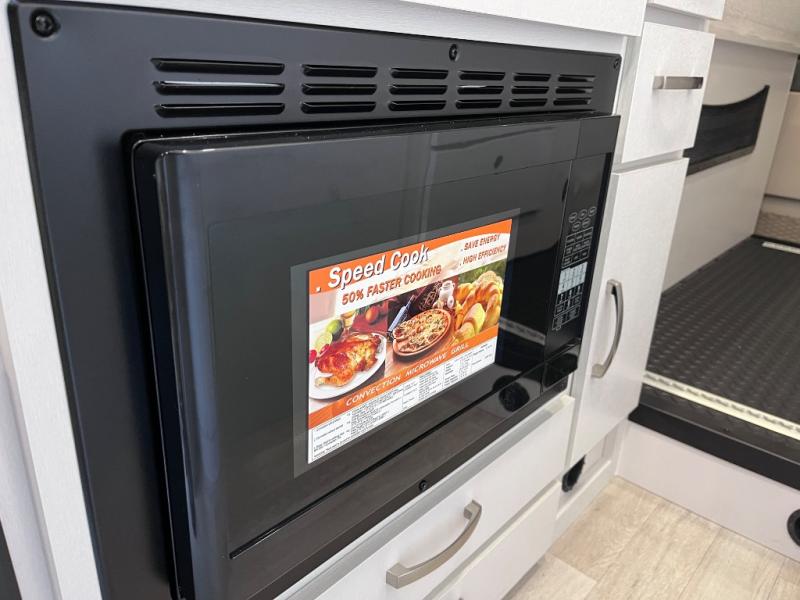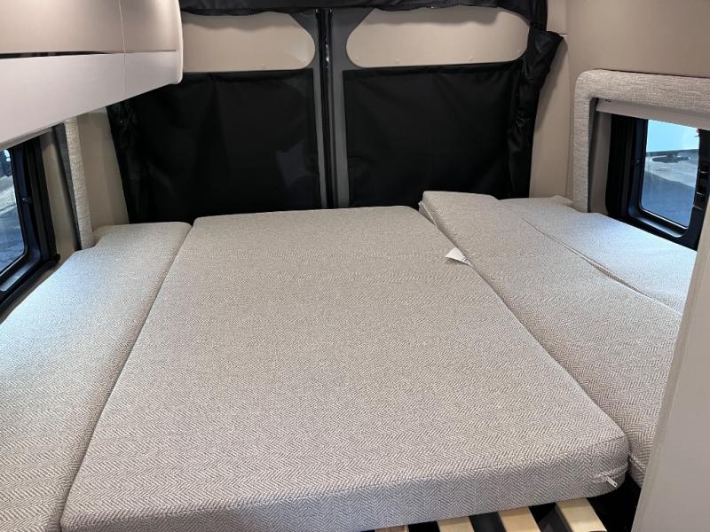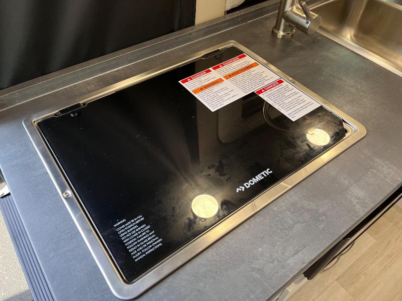 This versatile coach is perfect for two with the option to sleep more when you choose the optional pop top! You can also choose an optional workstation in place of the bench seat up front if you need to get some work done. The wet bath will let you freshen up each day, and the kitchen includes a convection microwave and two burner gas cooktop to cook meals. You'll find a Murphy bed in the back with under-floor storage and pull-out trays, perfect for all your hiking gear! There is also a bench seat as well, along with an overhead cabinet for even more storage.