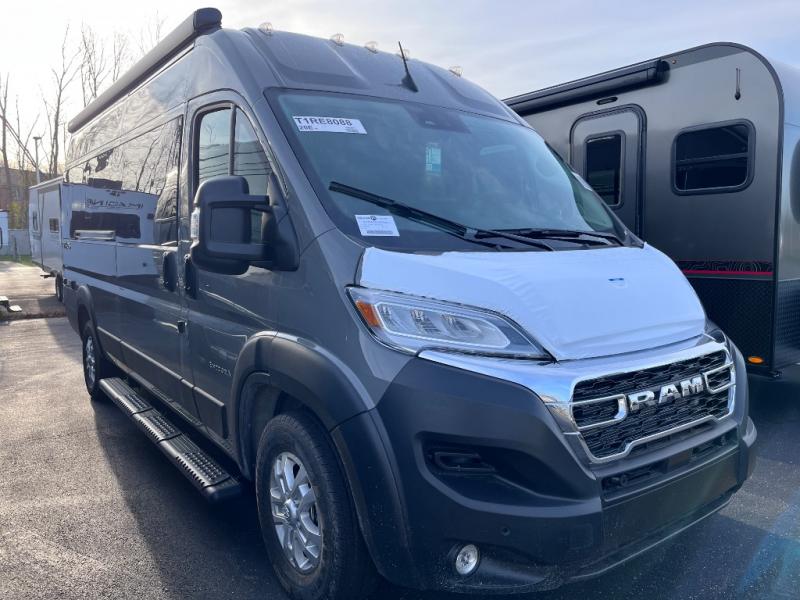 With any Ethos Class B gas motorhome by Entegra you will find helpful technology features, luxury amenities, and a smooth drive thanks to the E-Z Drive system. The 3.6L V6 24V VVT 276HP engine will power your trips near and far, plus there is an 2800-watt gas generator on board and a 1,000-watt inverter. Each model also includes a Truma Combi Eco Plus water heater and furnace, a 13,500 BTU A/C, a water filtration system, plus many more convenient systems. A Uconnect 5 NAV infotainment center comes standard, along with a backup camera and a cab area privacy shade. You'll be traveling in luxury with residential vinyl flooring, European-style high-gloss cabinetry, a soft-touch vinyl celling, and pressed countertops. Start a new adventure today in an Ethos Class B gas motorhome today!