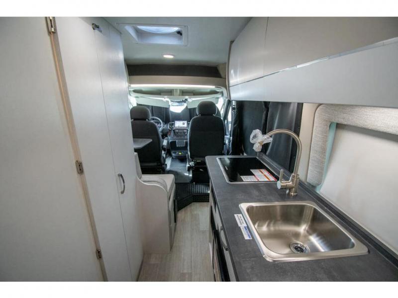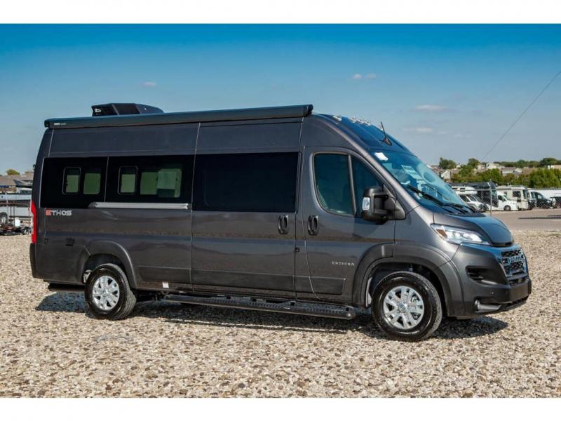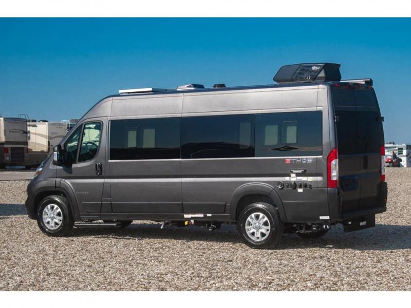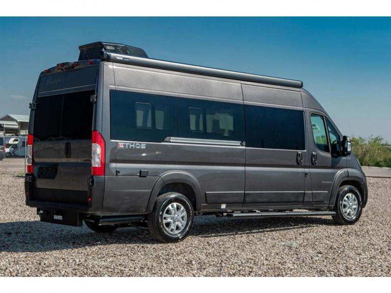 With any Ethos Class B gas motorhome by Entegra you will find helpful technology features, luxury amenities, and a smooth drive thanks to the E-Z Drive system. The 3.6L V6 24V VVT 276HP engine will power your trips near and far, plus there is an 2800-watt gas generator on board and a 1,000-watt inverter. Each model also includes a Truma Combi Eco Plus water heater and furnace, a 13,500 BTU A/C, a water filtration system, plus many more convenient systems. A Uconnect 5 NAV infotainment center comes standard, along with a backup camera and a cab area privacy shade. You'll be traveling in luxury with residential vinyl flooring, European-style high-gloss cabinetry, a soft-touch vinyl celling, and pressed countertops. Start a new adventure today in an Ethos Class B gas motorhome today!