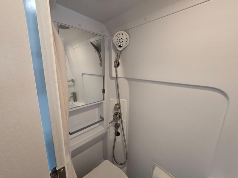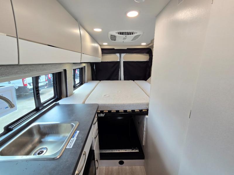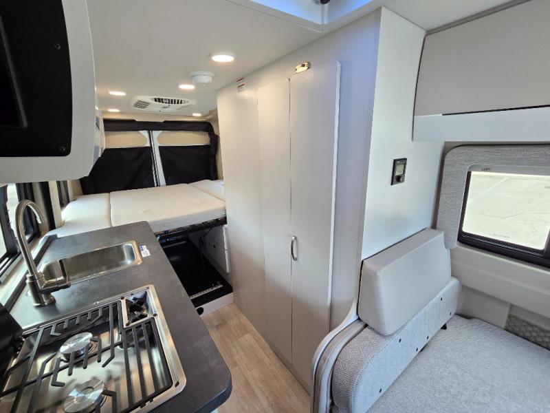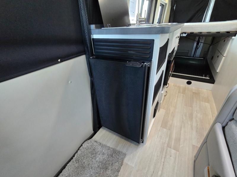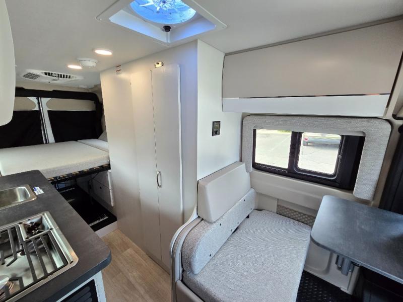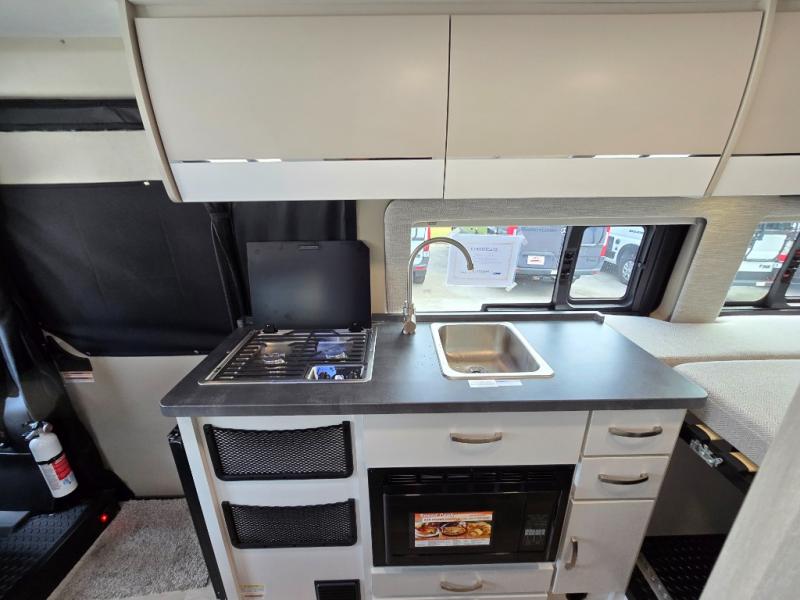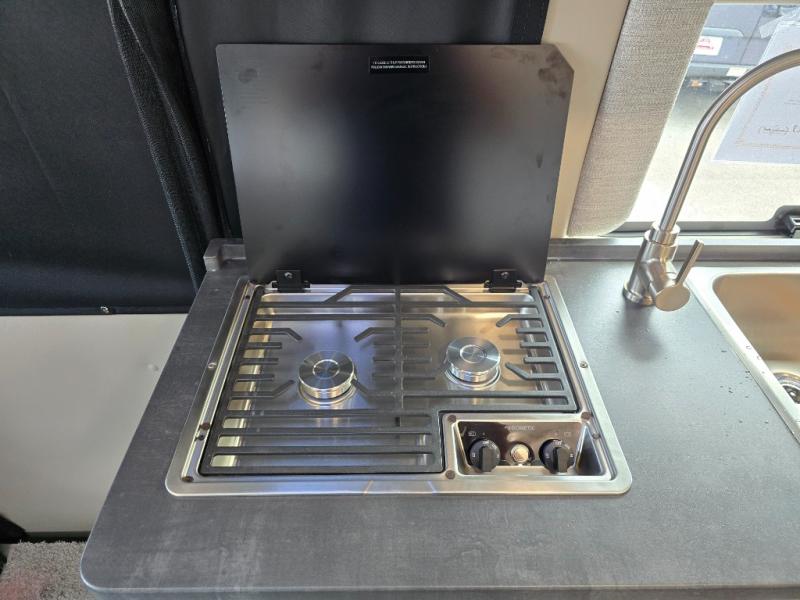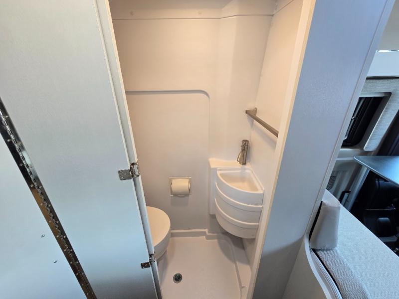 This versatile coach is perfect for two with the option to sleep more when you choose the optional pop top! You can also choose an optional workstation in place of the bench seat up front if you need to get some work done. The wet bath will let you freshen up each day, and the kitchen includes a convection microwave and two burner gas cooktop to cook meals. You'll find a Murphy bed in the back with under-floor storage and pull-out trays, perfect for all your hiking gear! There is also a bench seat as well, along with an overhead cabinet for even more storage.