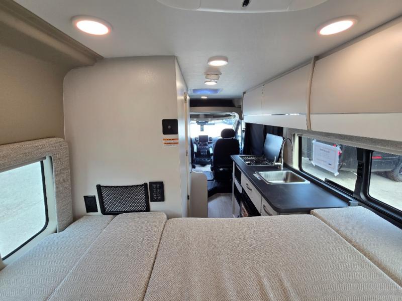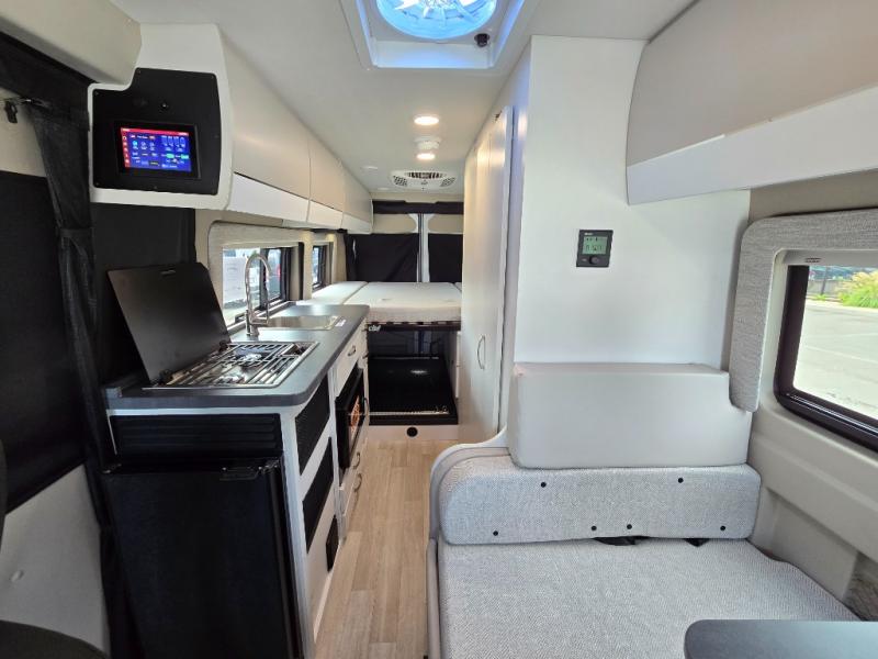 With any Ethos Class B gas motorhome by Entegra you will find helpful technology features, luxury amenities, and a smooth drive thanks to the E-Z Drive system. The 3.6L V6 24V VVT 276HP engine will power your trips near and far, plus there is an 2800-watt gas generator on board and a 1,000-watt inverter. Each model also includes a Truma Combi Eco Plus water heater and furnace, a 13,500 BTU A/C, a water filtration system, plus many more convenient systems. A Uconnect 5 NAV infotainment center comes standard, along with a backup camera and a cab area privacy shade. You'll be traveling in luxury with residential vinyl flooring, European-style high-gloss cabinetry, a soft-touch vinyl celling, and pressed countertops. Start a new adventure today in an Ethos Class B gas motorhome today!