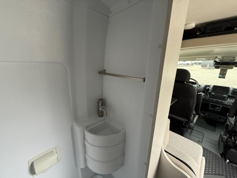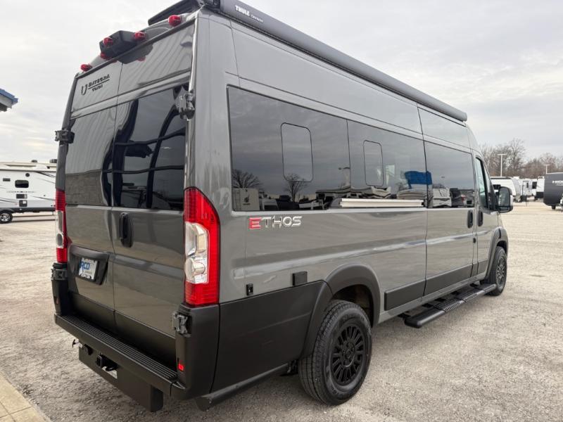 With any Ethos Class B gas motorhome by Entegra you will find helpful technology features, luxury amenities, and a smooth drive thanks to the E-Z Drive system. The 3.6L V6 24V VVT 276HP engine will power your trips near and far, plus there is an 2800-watt gas generator on board and a 1,000-watt inverter. Each model also includes a Truma Combi Eco Plus water heater and furnace, a 13,500 BTU A/C, a water filtration system, plus many more convenient systems. A Uconnect 5 NAV infotainment center comes standard, along with a backup camera and a cab area privacy shade. You'll be traveling in luxury with residential vinyl flooring, European-style high-gloss cabinetry, a soft-touch vinyl celling, and pressed countertops. Start a new adventure today in an Ethos Class B gas motorhome today!