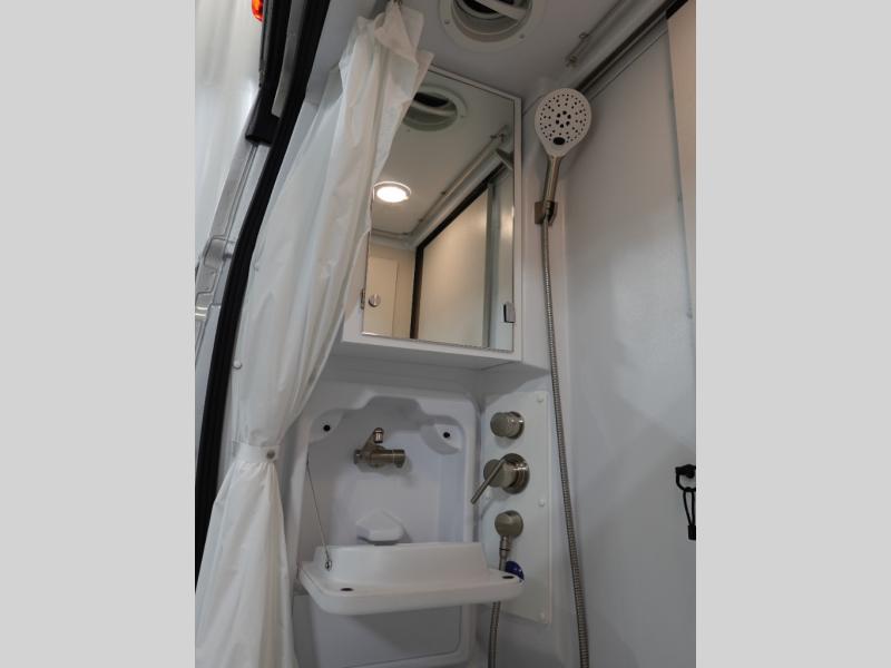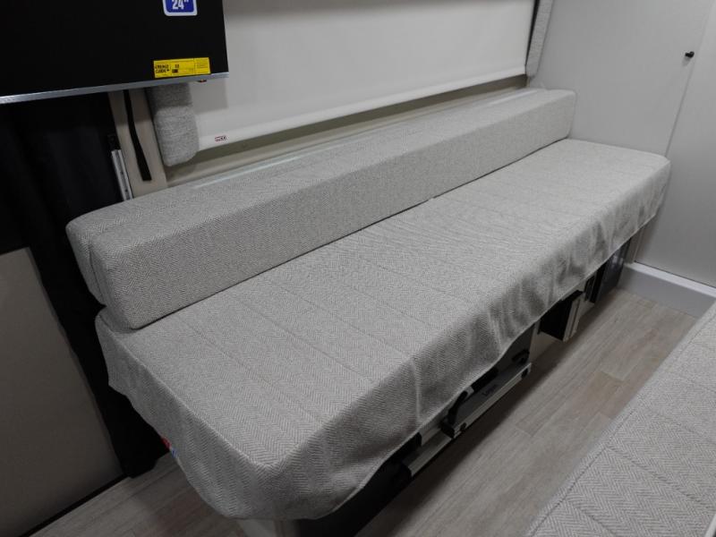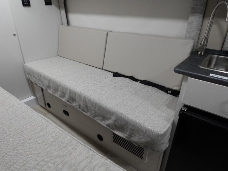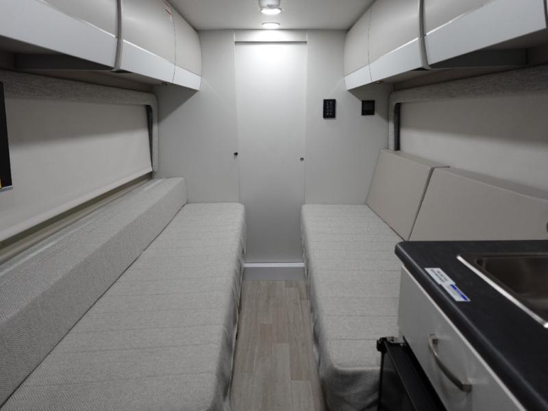 Your trek across country is made comfortable in this coach for two. You can swivel the captains seats around when you get to your destination, or head outdoors to sit under the 13' Thule armless awning with LED lights. The pull-out table indoors will provide a space for your coffee in the morning, while breakfast is being cooked in the convection microwave or on the two burner cooktop. A rear wet bath will allow you to stay clean throughout your trip, and you'll find plenty of storage space for your belongings. You'll love the versatile sleeping arrangements in this model that includes twin-size beds with a filler cushion that converts to a king-size bed, plus there is under-bed storage for your luggage.