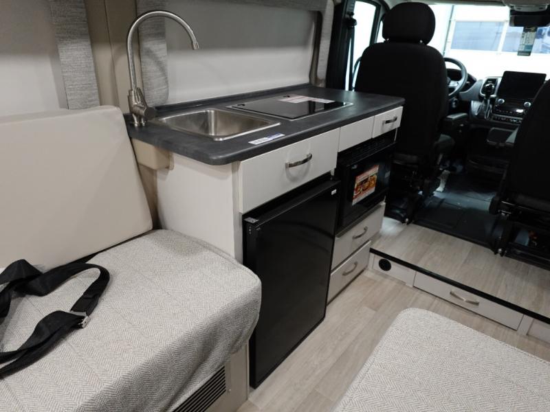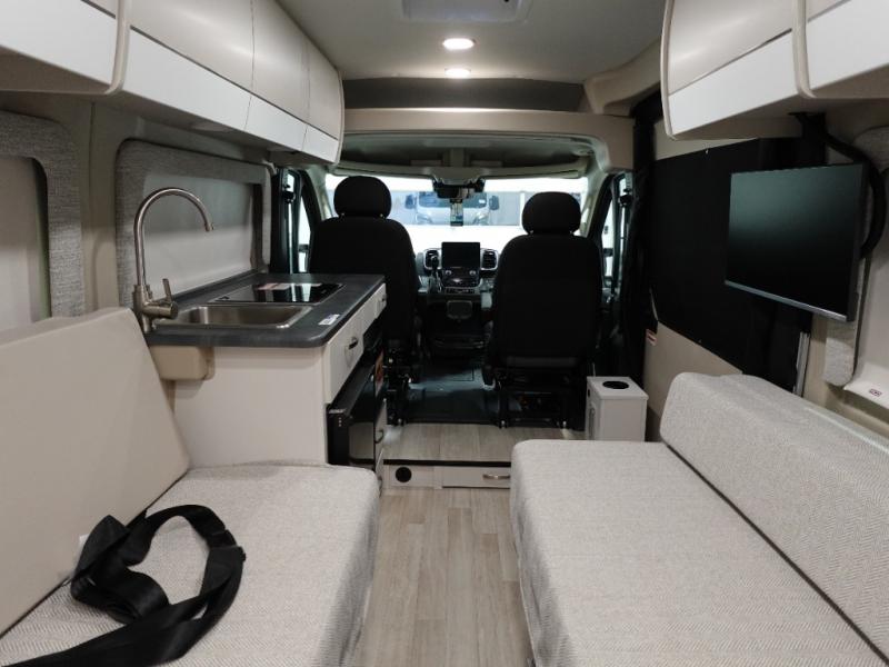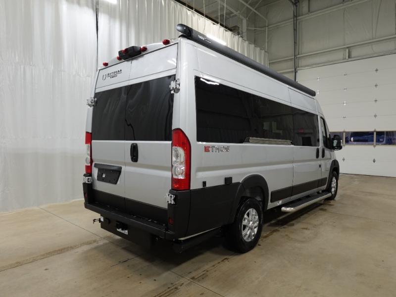 With any Ethos Class B gas motorhome by Entegra you will find helpful technology features, luxury amenities, and a smooth drive thanks to the E-Z Drive system. The 3.6L V6 24V VVT 276HP engine will power your trips near and far, plus there is an 2800-watt gas generator on board and a 1,000-watt inverter. Each model also includes a Truma Combi Eco Plus water heater and furnace, a 13,500 BTU A/C, a water filtration system, plus many more convenient systems. A Uconnect 5 NAV infotainment center comes standard, along with a backup camera and a cab area privacy shade. You'll be traveling in luxury with residential vinyl flooring, European-style high-gloss cabinetry, a soft-touch vinyl celling, and pressed countertops. Start a new adventure today in an Ethos Class B gas motorhome today!