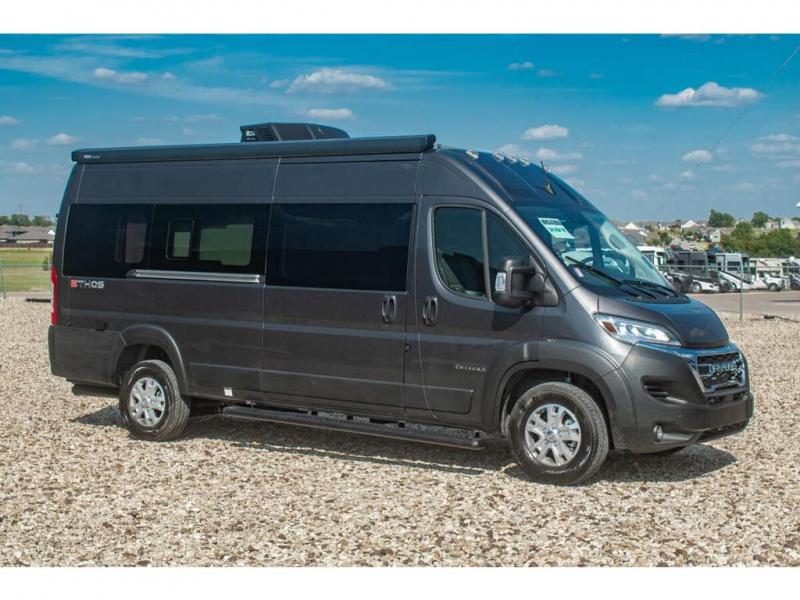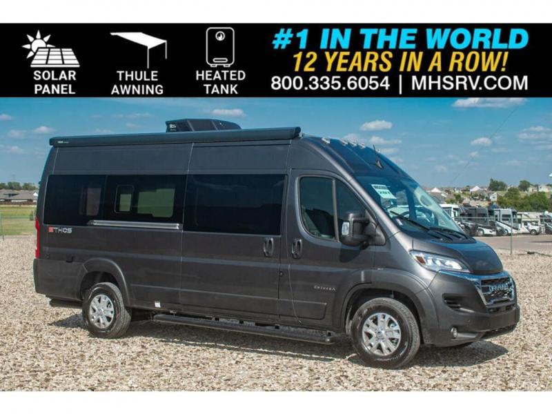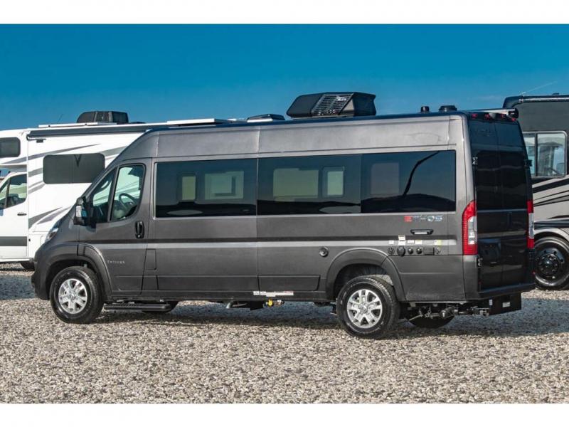 With any Ethos Class B gas motorhome by Entegra you will find helpful technology features, luxury amenities, and a smooth drive thanks to the E-Z Drive system. The 3.6L V6 24V VVT 276HP engine will power your trips near and far, plus there is an 2800-watt gas generator on board and a 1,000-watt inverter. Each model also includes a Truma Combi Eco Plus water heater and furnace, a 13,500 BTU A/C, a water filtration system, plus many more convenient systems. A Uconnect 5 NAV infotainment center comes standard, along with a backup camera and a cab area privacy shade. You'll be traveling in luxury with residential vinyl flooring, European-style high-gloss cabinetry, a soft-touch vinyl celling, and pressed countertops. Start a new adventure today in an Ethos Class B gas motorhome today!