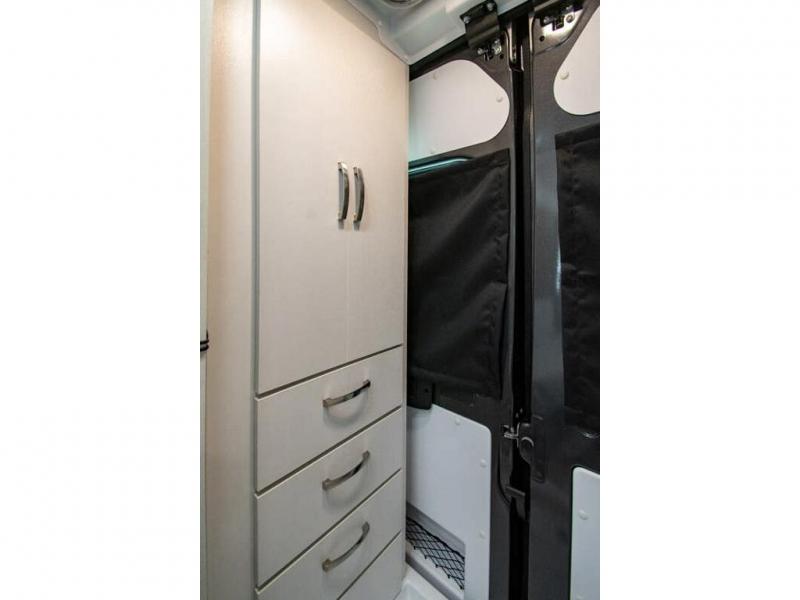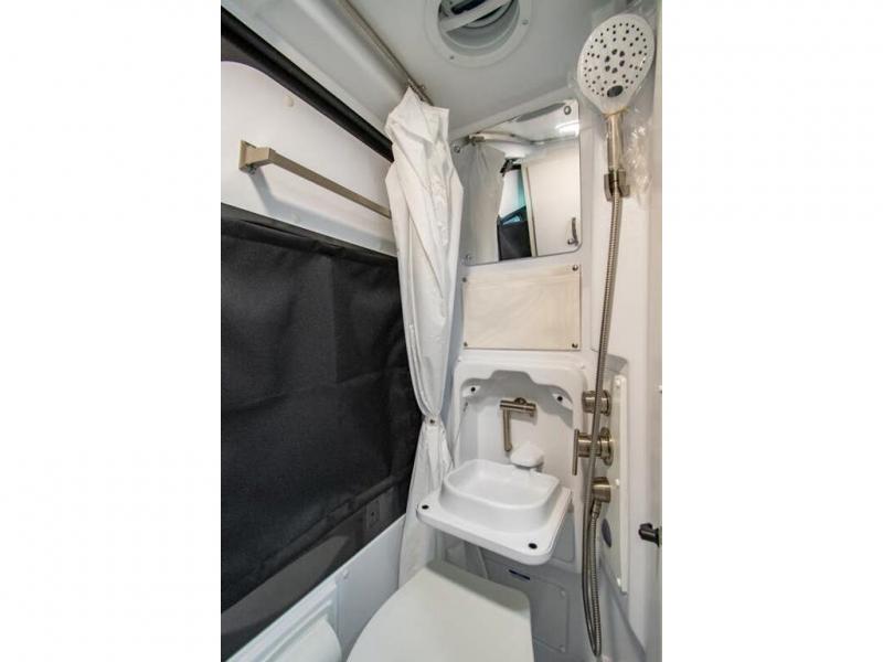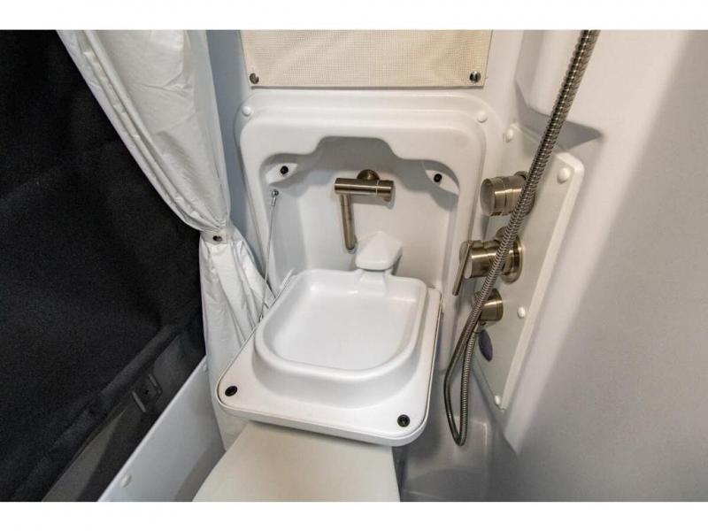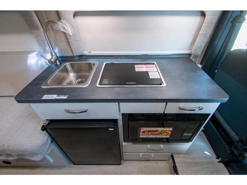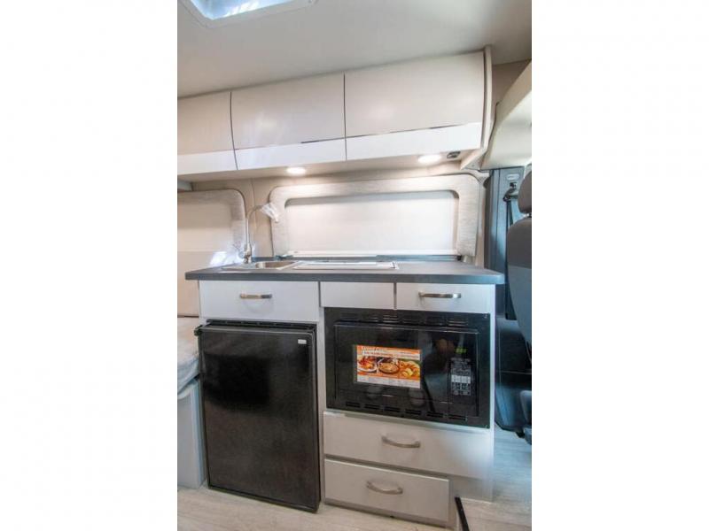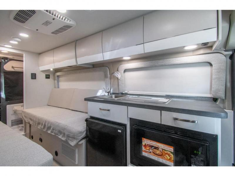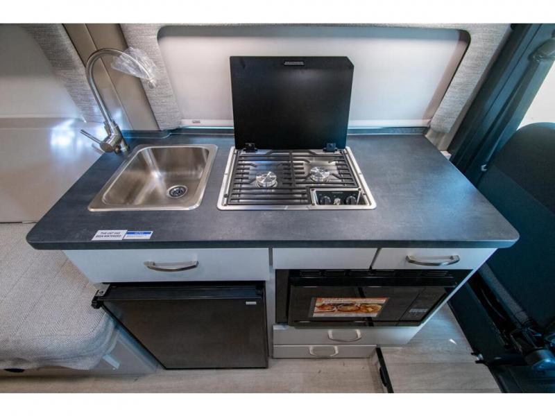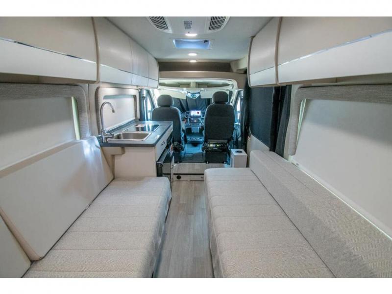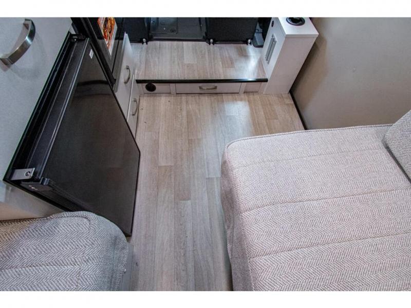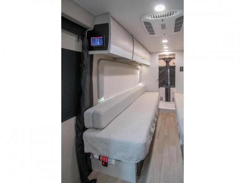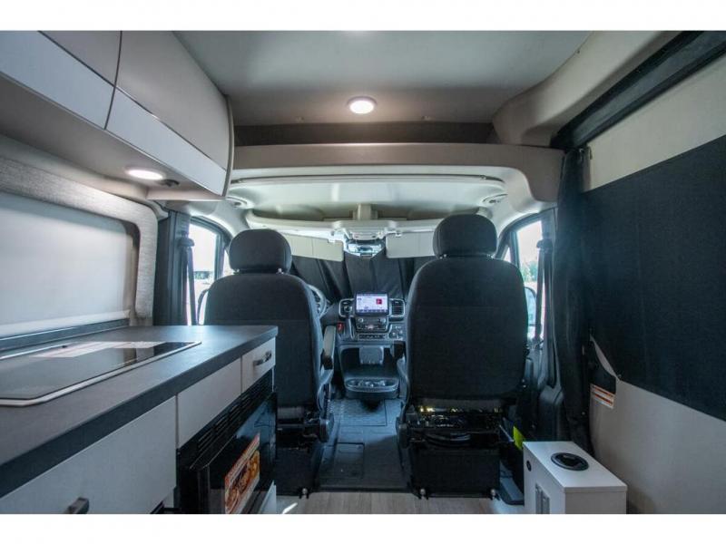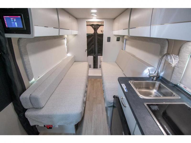 Your trek across country is made comfortable in this coach for two. You can swivel the captains seats around when you get to your destination, or head outdoors to sit under the 13' Thule armless awning with LED lights. The pull-out table indoors will provide a space for your coffee in the morning, while breakfast is being cooked in the convection microwave or on the two burner cooktop. A rear wet bath will allow you to stay clean throughout your trip, and you'll find plenty of storage space for your belongings. You'll love the versatile sleeping arrangements in this model that includes twin-size beds with a filler cushion that converts to a king-size bed, plus there is under-bed storage for your luggage. The optional Li Package can also be added which features a 48V-165 amp hour smart lithium battery, providing 7.9KW hours of power, and more; see dealer for more details!