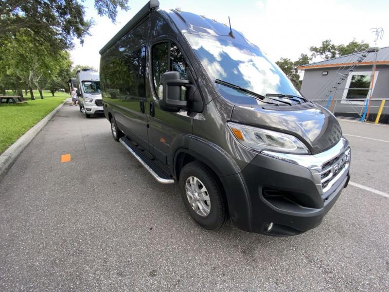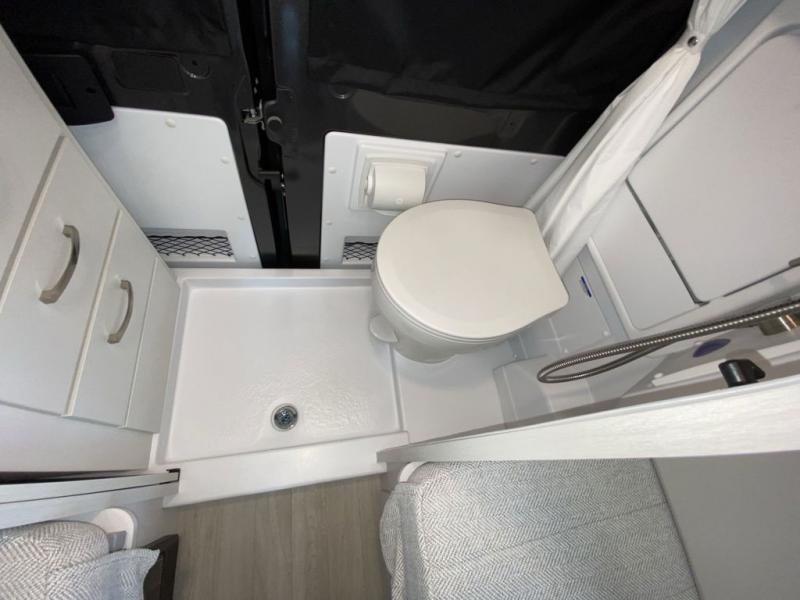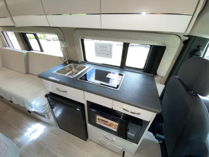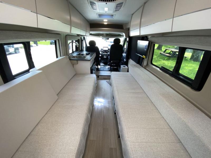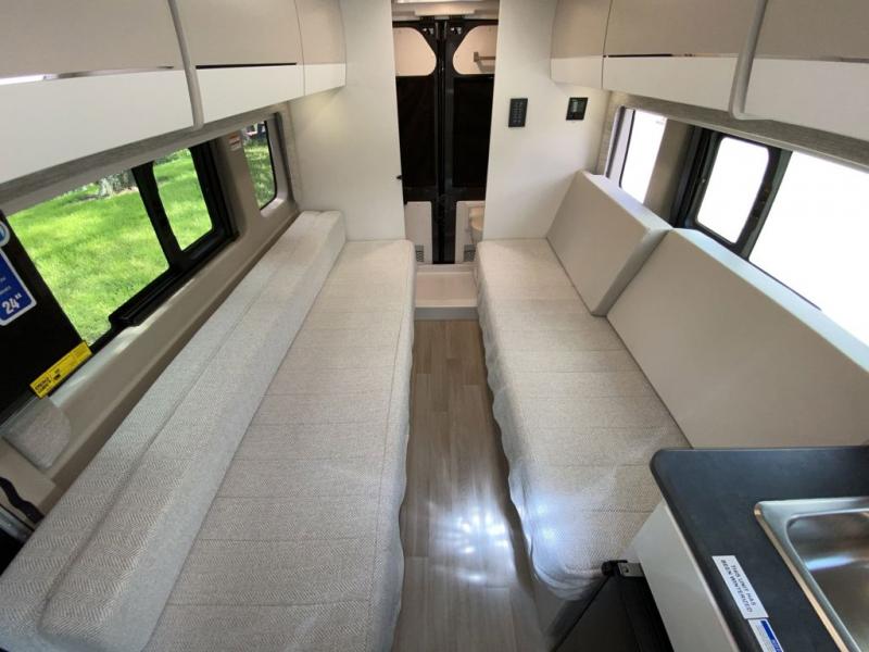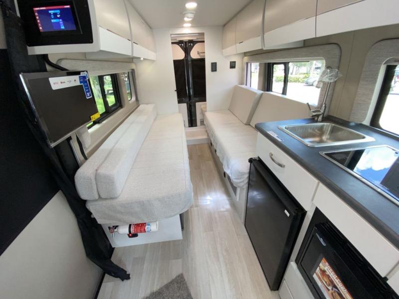 Your trek across country is made comfortable in this coach for two. You can swivel the captains seats around when you get to your destination, or head outdoors to sit under the 13' Thule armless awning with LED lights. The pull-out table indoors will provide a space for your coffee in the morning, while breakfast is being cooked in the convection microwave or on the two burner cooktop. A rear wet bath will allow you to stay clean throughout your trip, and you'll find plenty of storage space for your belongings. You'll love the versatile sleeping arrangements in this model that includes twin-size beds with a filler cushion that converts to a king-size bed, plus there is under-bed storage for your luggage. The optional Li Package can also be added which features a 48V-165 amp hour smart lithium battery, providing 7.9KW hours of power, and more; see dealer for more details!