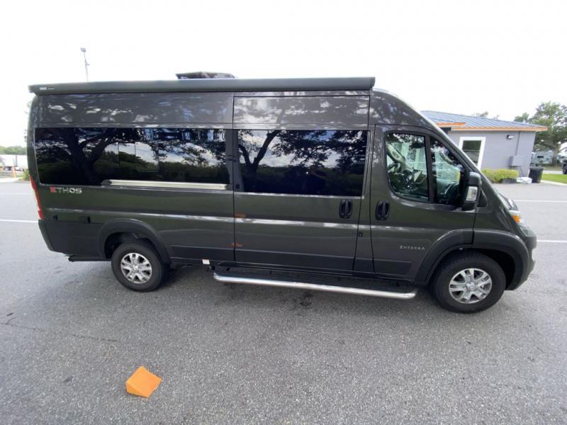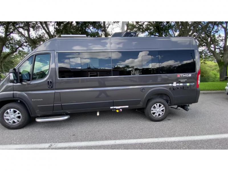 With any Ethos Class B gas motorhome by Entegra you will find helpful technology features, luxury amenities, and a smooth drive thanks to the E-Z Drive system. The 3.6L V6 24V VVT 276HP engine will power your trips near and far, plus there is an 2800-watt gas generator on board and a 1,000-watt inverter. Each model also includes a Truma Combi Eco Plus water heater and furnace, a 13,500 BTU A/C, a water filtration system, plus many more convenient systems. A Uconnect 5 NAV infotainment center comes standard, along with a backup camera and a cab area privacy shade. You'll be traveling in luxury with residential vinyl flooring, European-style high-gloss cabinetry, a soft-touch vinyl celling, and pressed countertops. Start a new adventure today in an Ethos Class B gas motorhome today!