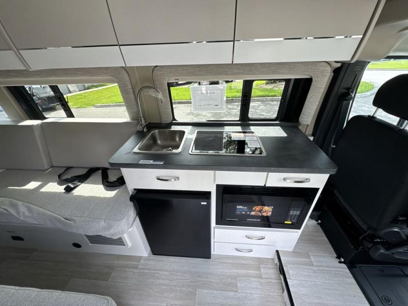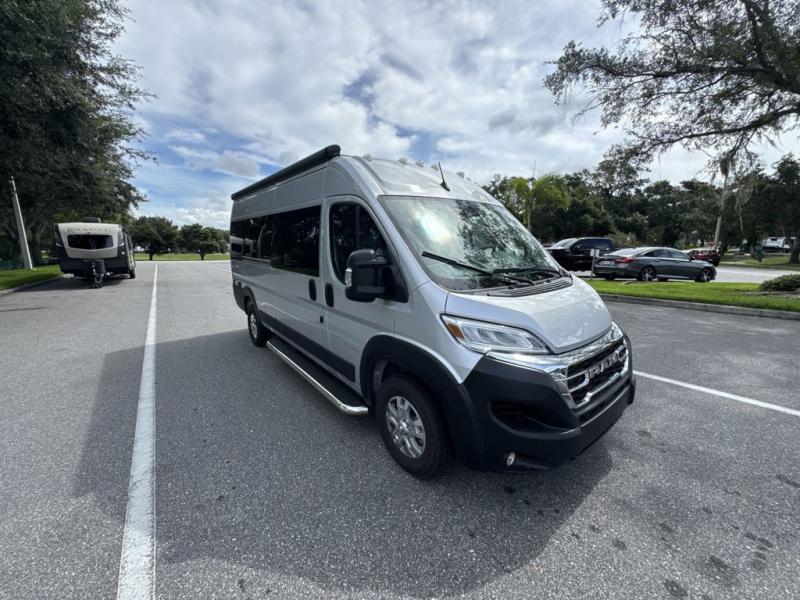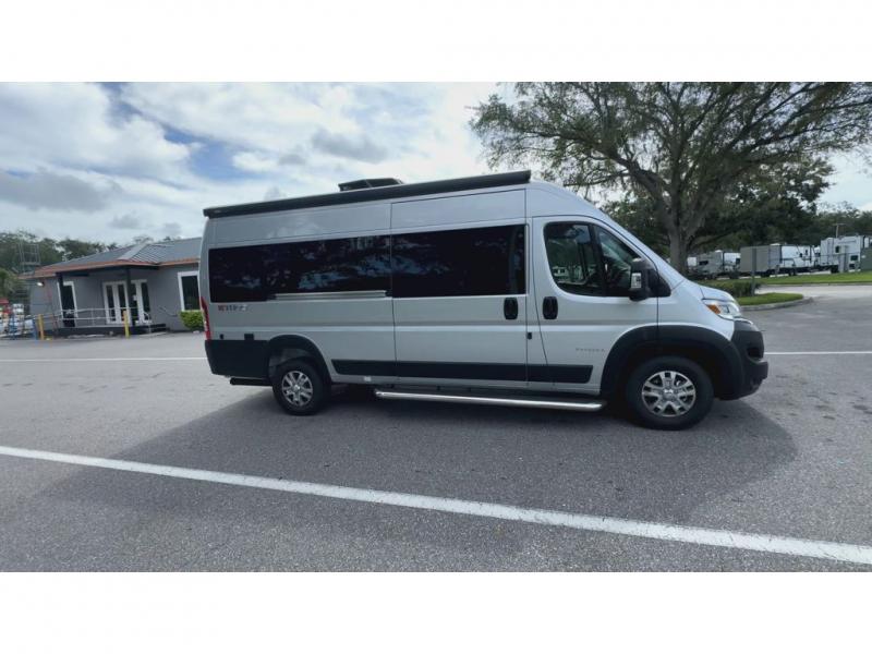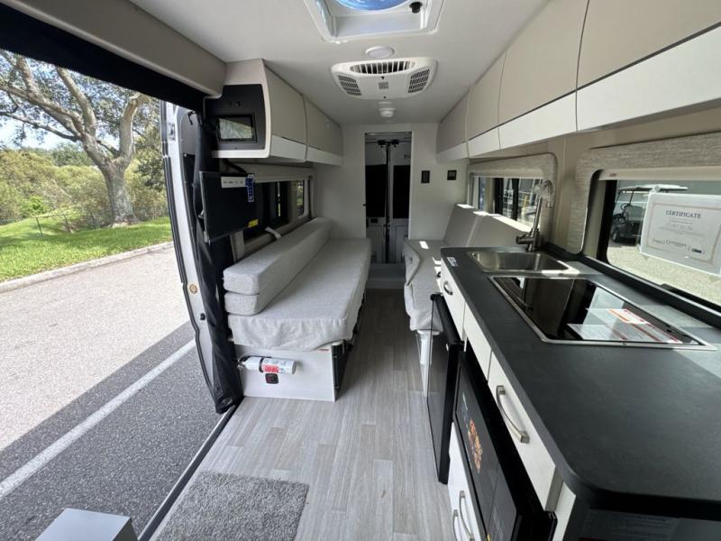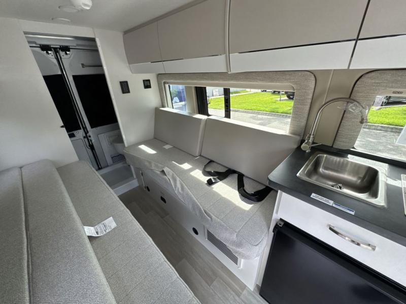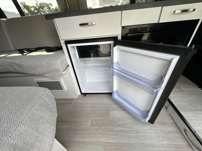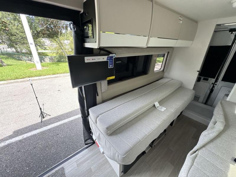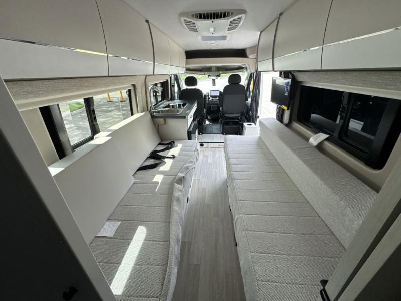 Your trek across country is made comfortable in this coach for two. You can swivel the captains seats around when you get to your destination, or head outdoors to sit under the 13' Thule armless awning with LED lights. The pull-out table indoors will provide a space for your coffee in the morning, while breakfast is being cooked in the convection microwave or on the two burner cooktop. A rear wet bath will allow you to stay clean throughout your trip, and you'll find plenty of storage space for your belongings. You'll love the versatile sleeping arrangements in this model that includes twin-size beds with a filler cushion that converts to a king-size bed, plus there is under-bed storage for your luggage. The optional Li Package can also be added which features a 48V-165 amp hour smart lithium battery, providing 7.9KW hours of power, and more; see dealer for more details!
