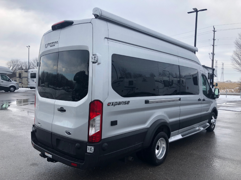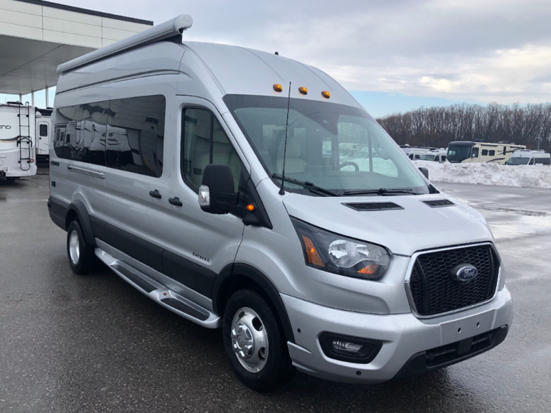 The Entegra Expanse Class B gas motorhome offers the Ford Transit AWD 350HD chassis, so you'll be good to go no matter the terrain or weather. There's a 3.5L EcoBoost V6 engine paired with a 10-speed transmission. You'll also appreciate the utility of all-terrain tires and the heavy-duty trailer tow package with dual 4/7 pin connector. The driving experience is enhanced by cutting-edge safety features like the 360° camera, blind spot assist, and side and reverse sensing systems. Outside amenities include a Carefree® armless motion sensing patio awning, fiberglass running boards, an exterior shower, and both rear and side screen doors. You'll be comfortable no matter what, with the 13,500 BTU air conditioner. An 2800W generator and 200W roof-mounted GoPower® solar panel with integrated control panel both come standard for all your power needs.