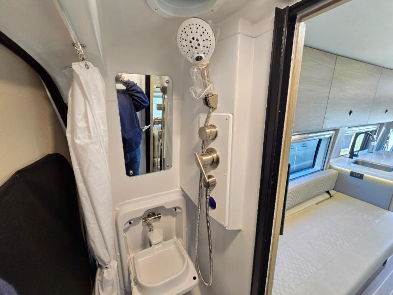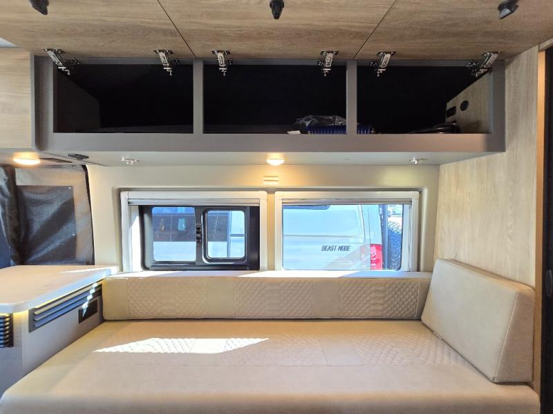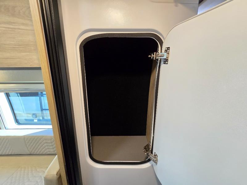 You will love what the 21T floorplan has to offer, there are two twin beds at the rear can be used separately or converted into a roomy sleeping space, giving you a comfortable retreat after a day of exploring. A flip-up seat desk and adjustable table let you create a convenient workspace or dining area, and the driver and passenger seats swivel to join the living space so you can relax. The galley is positioned mid-coach so it’s only a few steps away whether you’re eating up front or lounging on the twin beds. The centrally located wet bath includes a 25" x 47" shower, foot-flush toilet, and Aqua View® SHOWERMI$ER™ water management system to help you conserve water on the road. Thoughtful design finishes it off with soft-close overhead cabinet, residential vinyl flooring, and a removable privacy shade for the sliding door window, creating a clean, modern space that still feels like home.