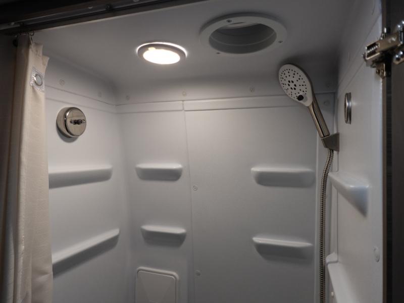 This model is very similar to model 19Y except that this model has a few different electrical features like a 2,500W LP generator with auto-gen start and a 2,000W inverter, plus more! You can stay squeaky clean with the all-in-one wet bath with shower, cassette toilet, and Aqua View SHOWERMISER water management system to cut down on your water usage. The fully equipped kitchen has everything you will need to prepare delicious meals while on the road like a portable induction cooktop, a 3 cu. ft. DC refrigerator, and a stainless steel sink. There is even a Tecnoform pull-out kitchen countertop extension, a pantry, and an adjustable table to enjoy your meals. Get a good night's rest each night on the 49" x 79" power lift bed with a gear garage below for your storage needs.