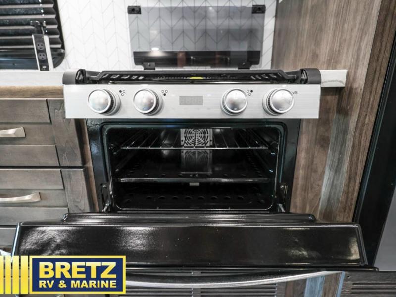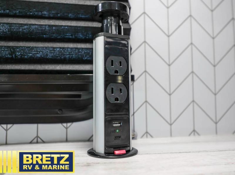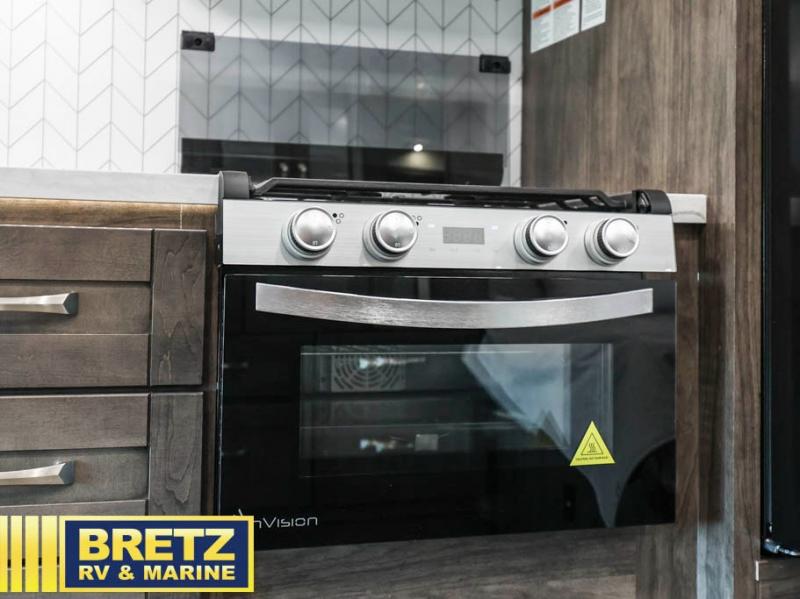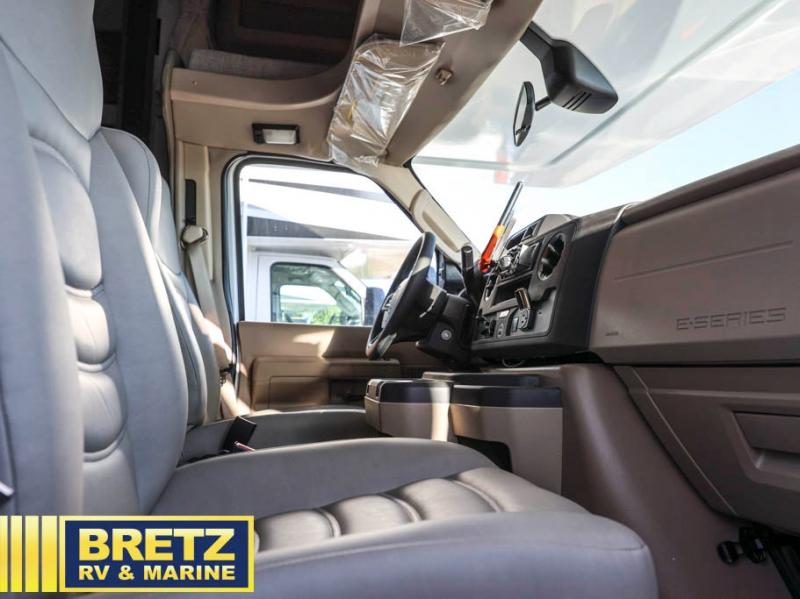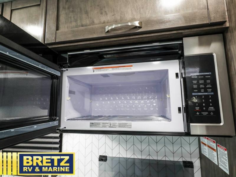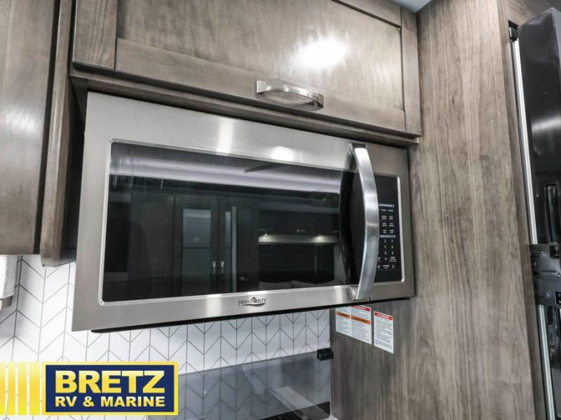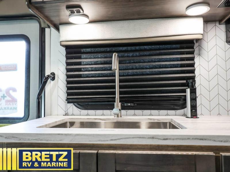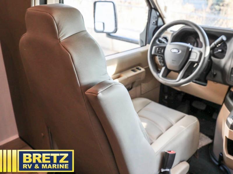 With any Odyssey Class C gas motorhome by Entegra Coach, the driver will appreciate the power from the 325 HP engine, the towing capacity from the 7,500 lb. hitch, the tire pressure monitoring system, the navigation from the Sony infotainment center with Apple CarPlay and Android Auto, plus the backup and side-view cameras when parking and driving down the highway. The kitchen offers full amenities including a recessed stainless steel sink with a cutting board sink cover, LED-lit countertops, a decorative backsplash, and a pop-up charging station with 110 outlet and USB plugs to keep your smart phones charged. Get ready for luxury in a Class C, choose your favorite today!