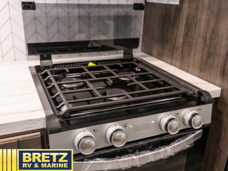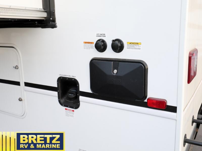 With any Odyssey Class C gas motorhome by Entegra Coach, the driver will appreciate the power from the 325 HP engine, the towing capacity from the 7,500 lb. hitch, the tire pressure monitoring system, the navigation from the Sony infotainment center with Apple CarPlay and Android Auto, plus the backup and side-view cameras when parking and driving down the highway. The kitchen offers full amenities including a recessed stainless steel sink with a cutting board sink cover, LED-lit countertops, a decorative backsplash, and a pop-up charging station with 110 outlet and USB plugs to keep your smart phones charged. Get ready for luxury in a Class C, choose your favorite today!