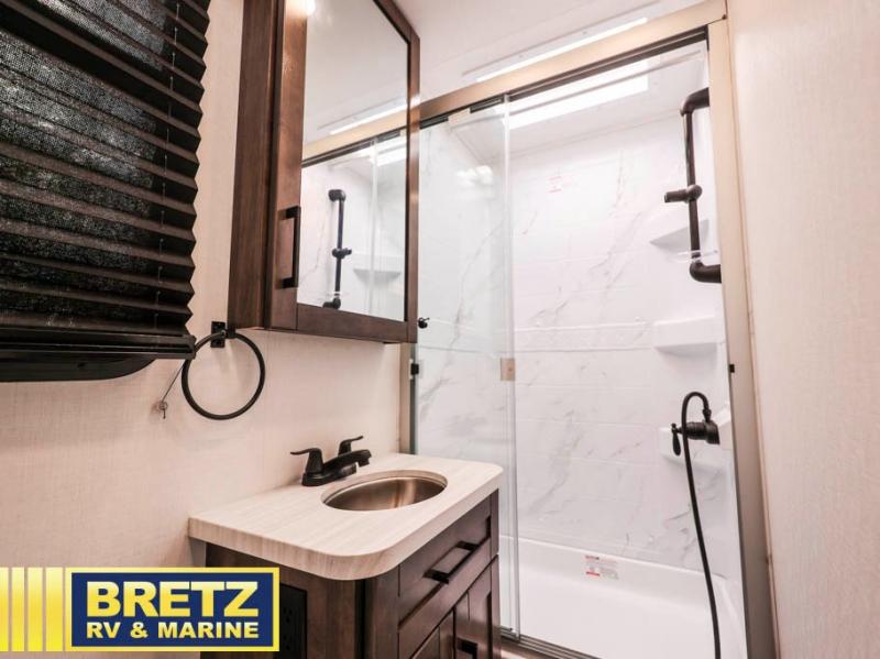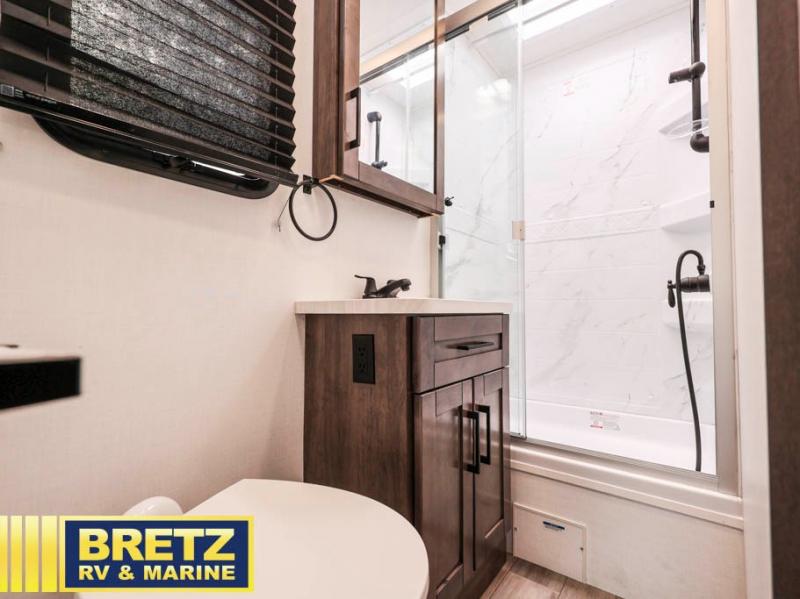 Looking to travel to see family and friends while stopping along the way to take in the scenery? Need comfortable accommodations for you and another plus extra sleeping space when you have overnight guests? This coach provides a full-wall slide for more interior floor space and includes a queen bed for a good night's sleep, a wardrobe for clothing, plus a U-shaped dinette and pantry. The dinette doubles as sleeping space, plus you have a cab-over bunk. The cook will have everything nearby to whip up meals including a residential-size microwave, and the full bathroom allows everyone to skip the public facilities along the way.