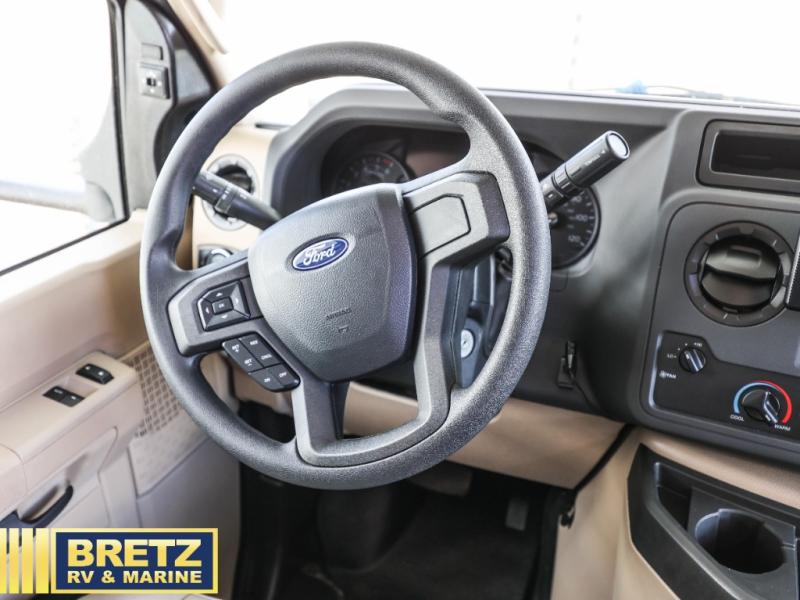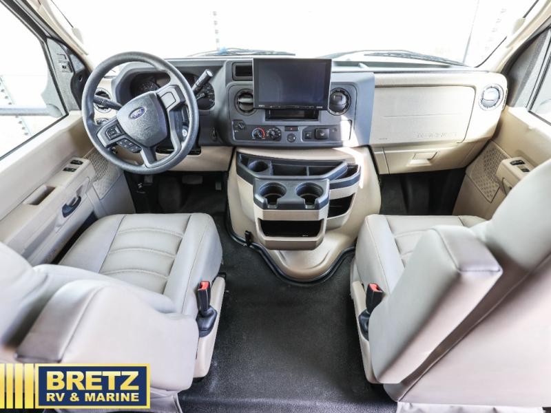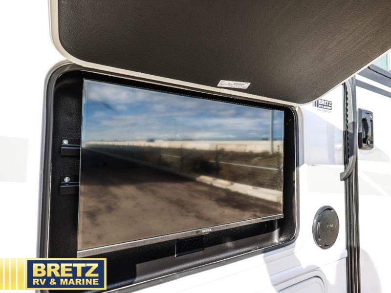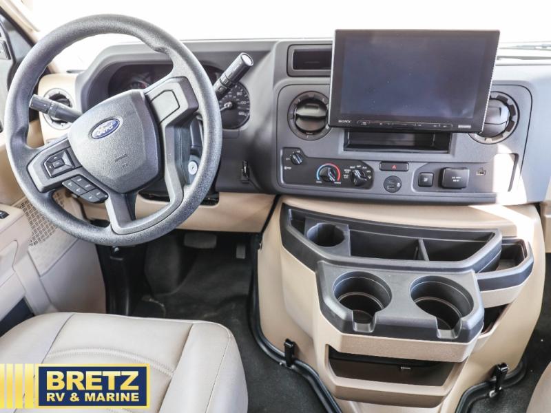With any Odyssey Class C gas motorhome by Entegra Coach, the driver will appreciate the power from the 325 HP engine, the towing capacity from the 7,500 lb. hitch, the tire pressure monitoring system, the navigation from the Sony infotainment center with Apple CarPlay and Android Auto, plus the backup and side-view cameras when parking and driving down the highway. The kitchen offers full amenities including a recessed stainless steel sink with a cutting board sink cover, LED-lit countertops, a decorative backsplash, and a pop-up charging station with 110 outlet and USB plugs to keep your smart phones charged. Get ready for luxury in a Class C, choose your favorite today!