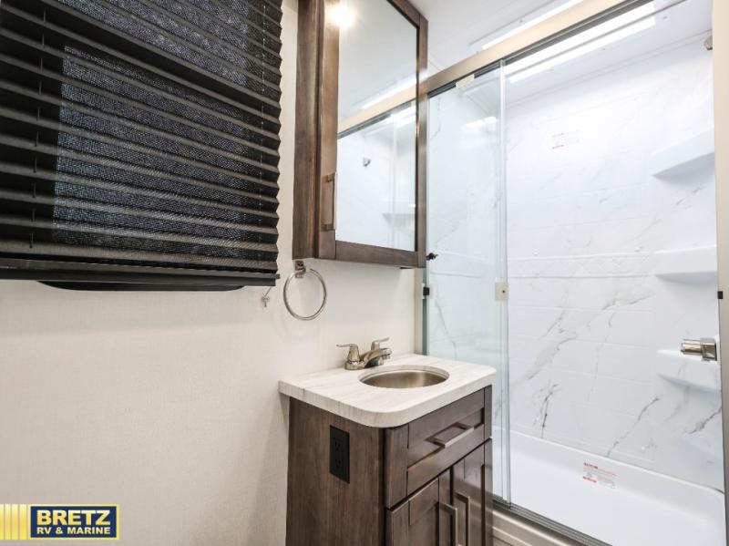 Looking to travel to see family and friends while stopping along the way to take in the scenery? Need comfortable accommodations for you and another plus extra sleeping space when you have overnight guests? This coach provides a full-wall slide for more interior floor space and includes a queen bed for a good night's sleep, a wardrobe for clothing, plus a U-shaped dinette and pantry. The dinette doubles as sleeping space, plus you have a cab-over bunk. The cook will have everything nearby to whip up meals including a residential-size microwave, and the full bathroom allows everyone to skip the public facilities along the way.