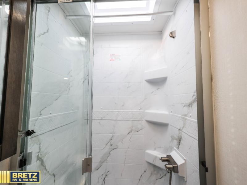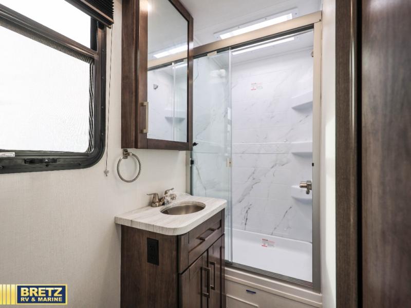 Looking to travel to see family and friends while stopping along the way to take in the scenery? Need comfortable accommodations for you and another plus extra sleeping space when you have overnight guests? This coach provides a full-wall slide for more interior floor space and includes a queen bed for a good night's sleep, a wardrobe for clothing, plus a U-shaped dinette and pantry. The dinette doubles as sleeping space, plus you have a cab-over bunk. The cook will have everything nearby to whip up meals including a residential-size microwave, and the full bathroom allows everyone to skip the public facilities along the way.