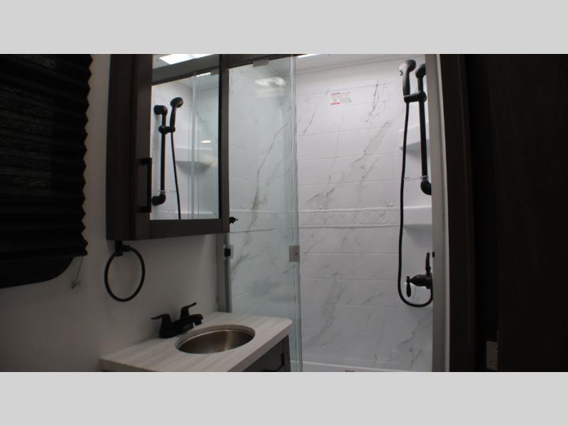 Looking to travel to see family and friends while stopping along the way to take in the scenery? Need comfortable accommodations for you and another plus extra sleeping space when you have overnight guests? This coach provides a full-wall slide for more interior floor space and includes a queen bed for a good night's sleep, a wardrobe for clothing, plus a U-shaped dinette and pantry. The dinette doubles as sleeping space, plus you have a cab-over bunk. The cook will have everything nearby to whip up meals including a residential-size microwave, and the full bathroom allows everyone to skip the public facilities along the way.