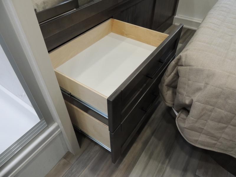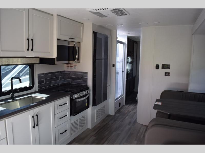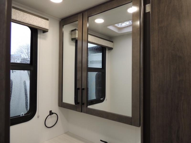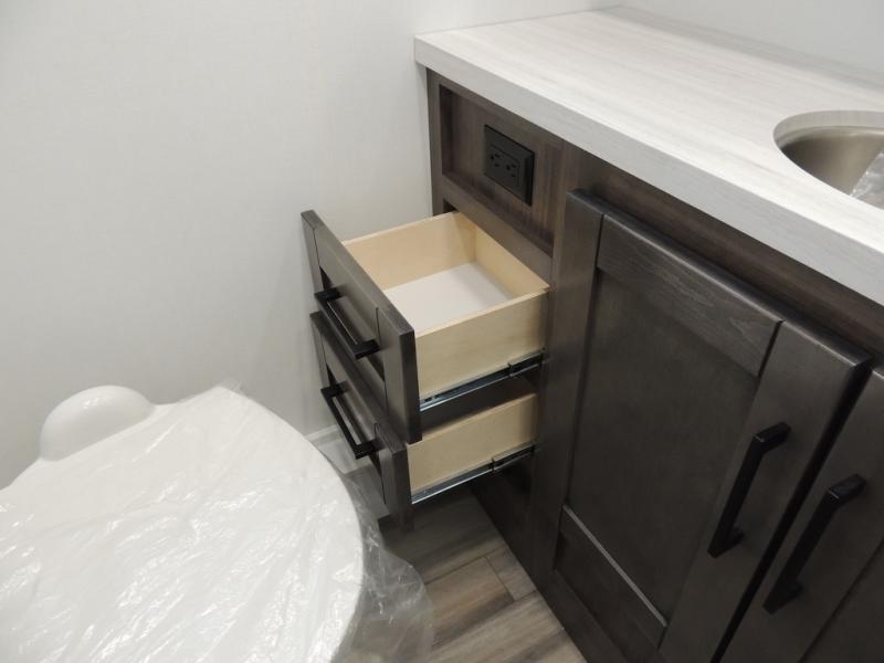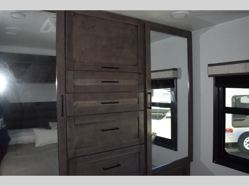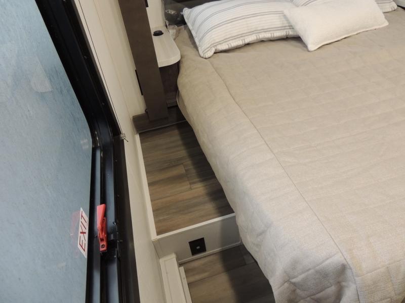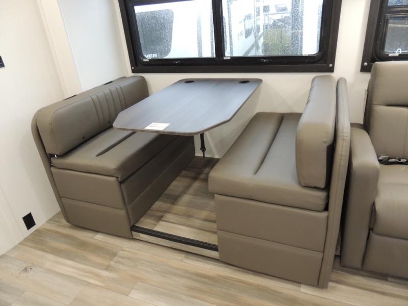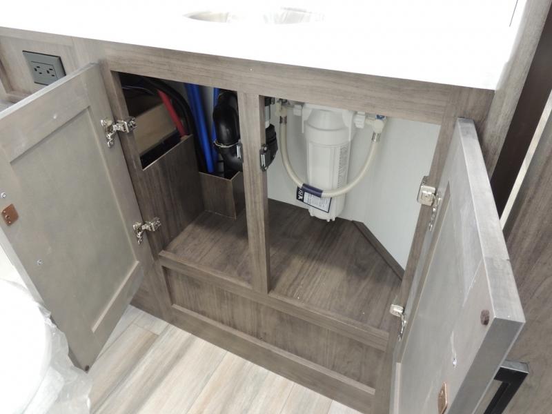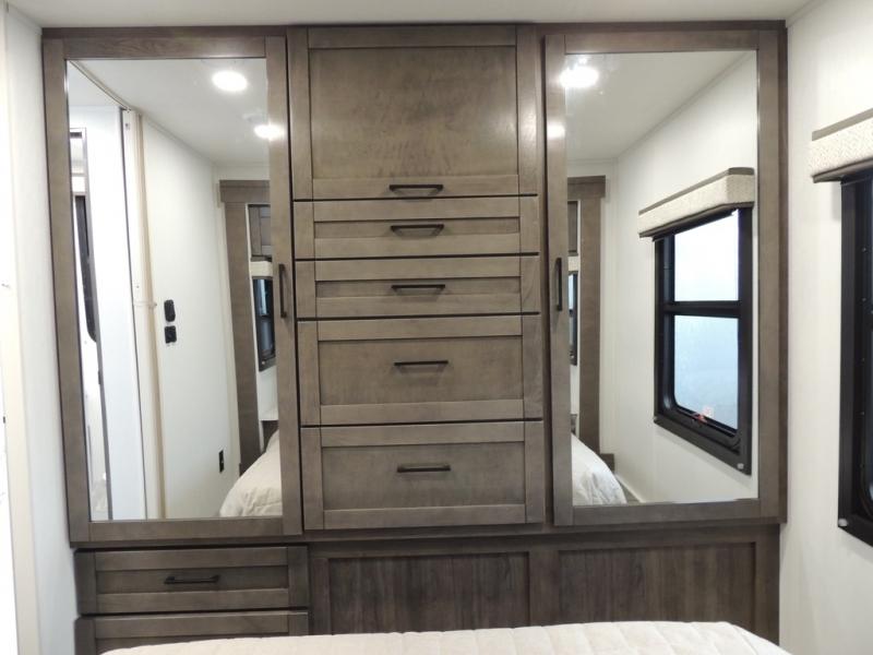 This coach allows you to take vacations in comfort and luxury with a spacious bedroom that includes a queen bed slide, dual wardrobes and a TV option for nighttime viewing, plus a way to close off the bedroom for privacy. The split bathroom gives you the ability to take a shower while another is brushing their teeth in the private toilet and sink room. You will find the main living and kitchen area to be spacious as well with a slide out that includes a booth dinette and sofa. And the cook will love the galley kitchen including the residential-size microwave and Furrion all-in-one cooktop and oven. And the cab-over bunk plus the furniture offers extra sleeping space. There are many more features to enjoy, take a look!