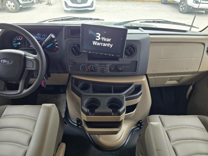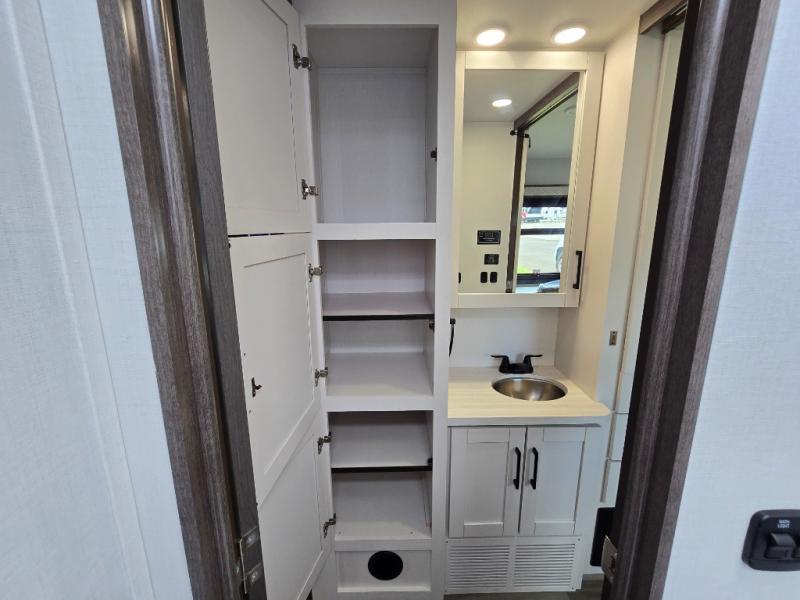 With any Odyssey Class C gas motorhome by Entegra Coach, the driver will appreciate the power from the 325 HP engine, the towing capacity from the 7,500 lb. hitch, the tire pressure monitoring system, the navigation from the Sony infotainment center with Apple CarPlay and Android Auto, plus the backup and side-view cameras when parking and driving down the highway. The kitchen offers full amenities including a recessed stainless steel sink with a cutting board sink cover, LED-lit pressed countertops, a decorative backsplash, and a pop-up charging station with 110 outlet and USB plugs to keep your smart phones charged. Get ready for luxury in a Class C, choose your favorite today!