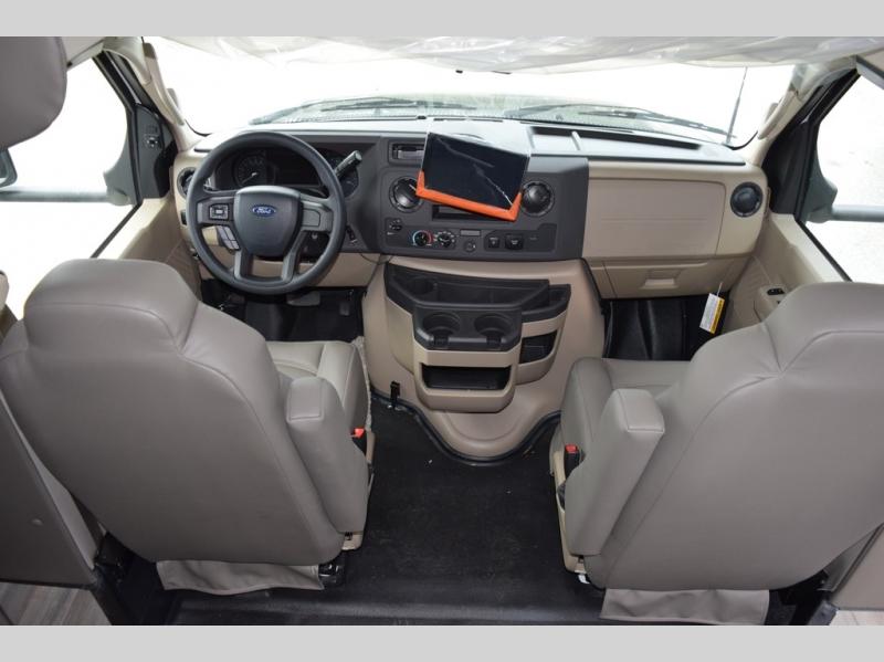 With any Odyssey Class C gas motorhome by Entegra Coach, the driver will appreciate the power from the 325 HP engine, the towing capacity from the 7,500 lb. hitch, the tire pressure monitoring system, the navigation from the Sony infotainment center with Apple CarPlay and Android Auto, plus the backup and side-view cameras when parking and driving down the highway. The kitchen offers full amenities including a recessed stainless steel sink with a cutting board sink cover, LED-lit pressed countertops, a decorative backsplash, and a pop-up charging station with 110 outlet and USB plugs to keep your smart phones charged. Get ready for luxury in a Class C, choose your favorite today!