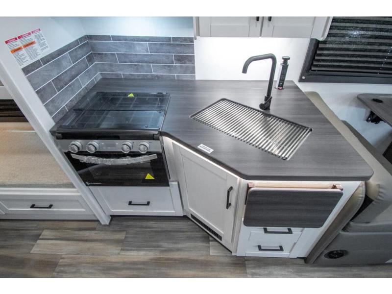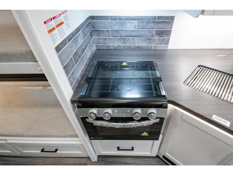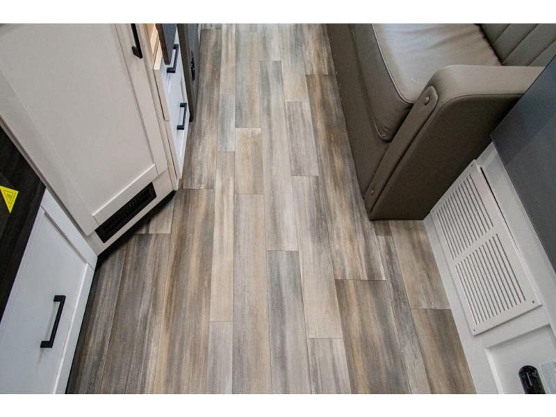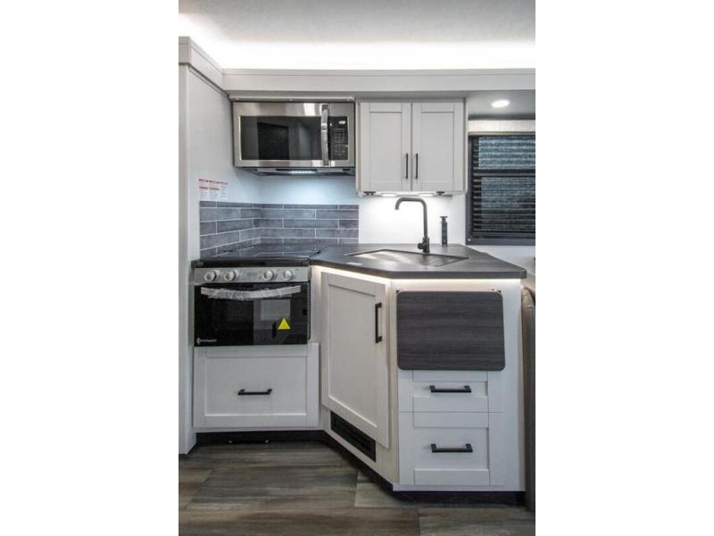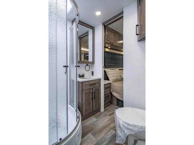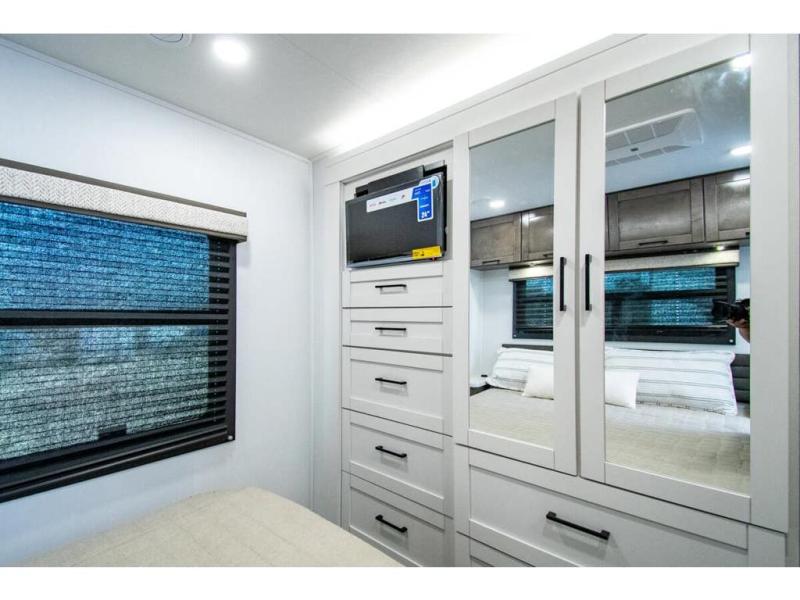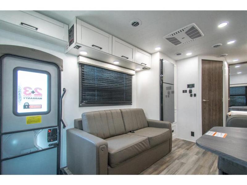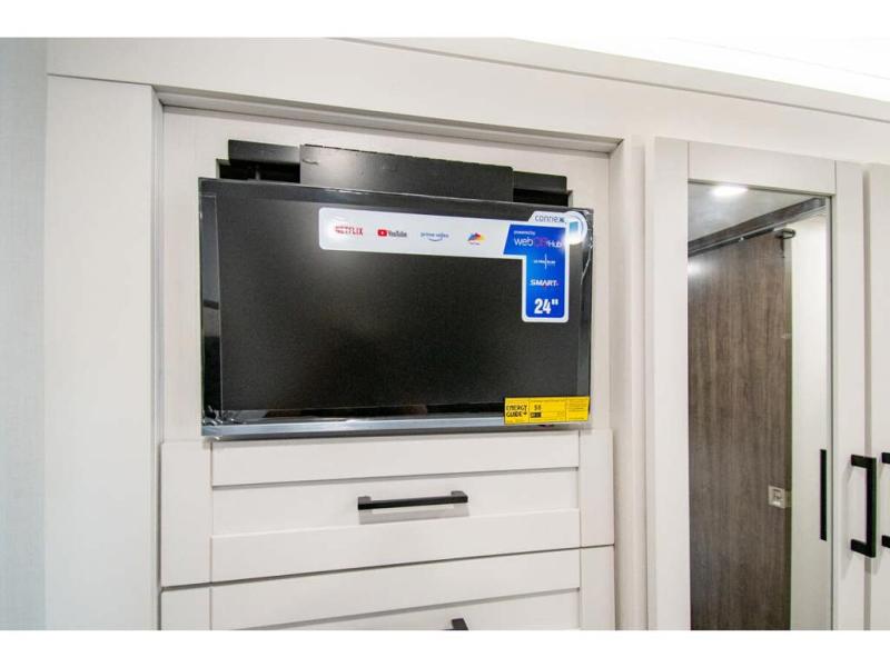 Gather your family and load up for travel games, camping games and all around comfort and luxury! The full-wall slide provides extra floor space from just behind the swivel captains chairs all the way back to the private rear bedroom with a queen bed and clothing storage. The bunk beds are across from the main entry to the bathroom, and your kids or grandkids will love this space as well as the front cab-over bunk. You even have more sleeping space provided by the booth dinette and sofa once easily set up for bedtime. And the cook will have a residential-size microwave, a Furrion all-in-one cooktop and oven, plus an 8 cu. ft. refrigerator to keep everyone fed, and the pantry will hold the snacks. Everyone can also enjoy the 18' electric awning while at the campsite either day or night thanks to the LED lights, and the exterior TV will allow you to watch the big game in the great outdoors.