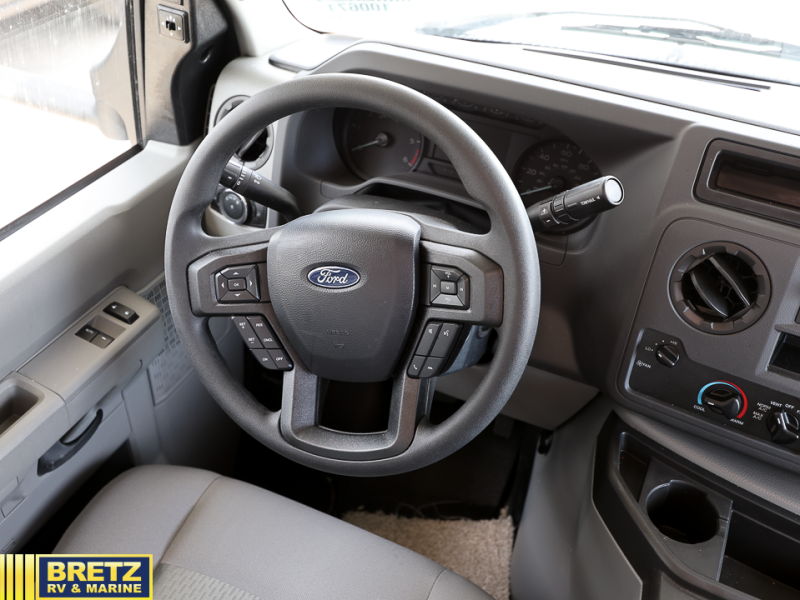 The Odyssey SE Class C gas motorhome by Entegra Coach is constructed with TuffShell vacuum-bond laminated sidewalls, a one-piece, seamless fiberglass front cap, and bead-foam insulation for added durability and strength. Whether you choose a model with a Ford E-350 chassis, Ford E-450 or Chevy 4500 chassis, you will get a durable coach made to last. The driver will also love the power steering, tilt steering wheel, and auxiliary start switch. The 7' interior ceiling height will provide plenty of space to stretch out and the high-intensity, recessed LED lights will make your space feel more like home. All of your power needs will be met with a 4,000-watt generator and 12V house battery, plus there is a 13.5K BTU A/C and 30K BTU furnace to keep you comfortable all year long. There are a couple additions you might want to add to further customize your Odyssey SE, like the optional automatic hydraulic leveling jacks and the optional 200W solar panel for some off-grid camping!