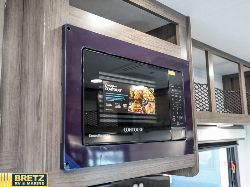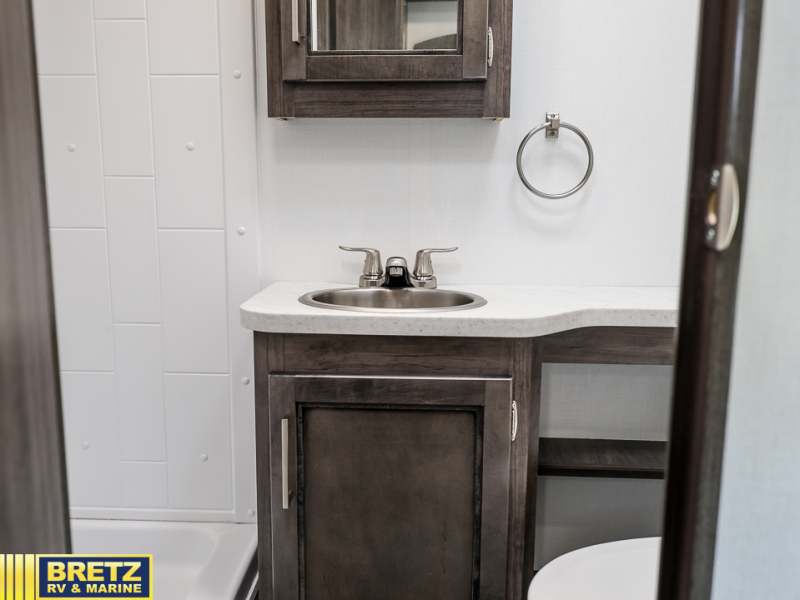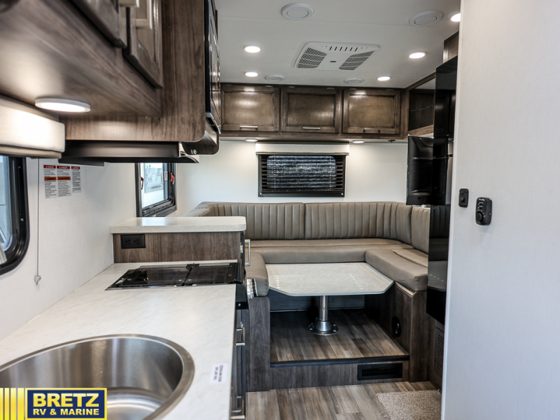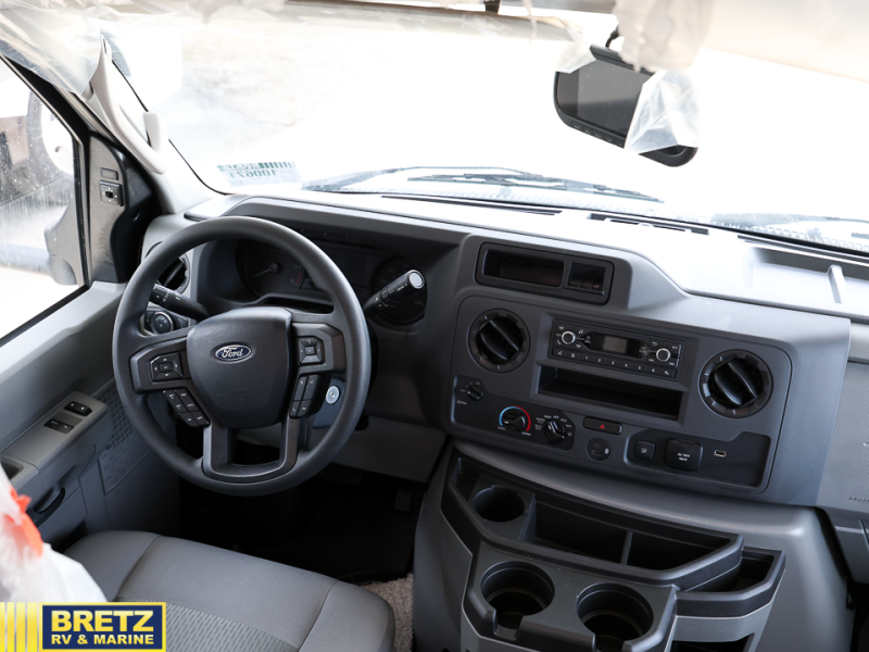 This Class C motorhome combines practicality and style for the perfect road trip. The U-shaped dinette is a great spot for meals, extra sleeping space, or game nights, perfect for family and friends. The 12V refrigerator keeps your snacks and drinks fresh. A full bathroom is handy for getting fresh, and there’s a wardrobe to stash your clothes. In the kitchen area, the microwave is perfect for quick meals, and with the sink and overhead cabinets, you’ve got all you need. And, two captain's chairs up front mean you and a co-pilot can ride in comfort, perfect for long drives