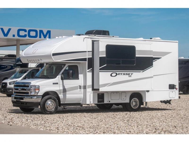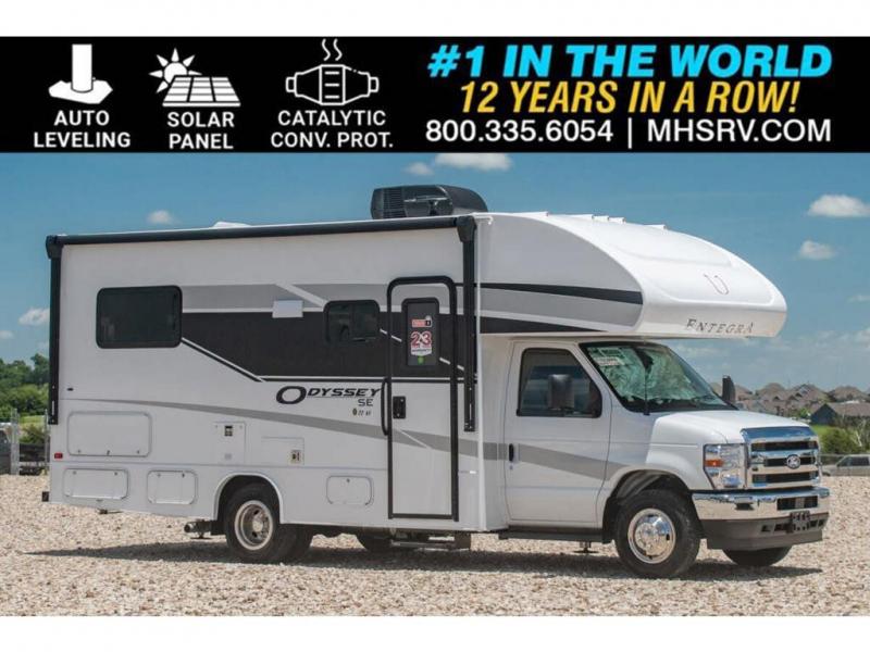 MSRP $134,003. New 2026 Entegra Odyssey SE 22AF Luxury Class C RV. The Odyssey SE features the Ford® V8, Catalytic converter theft deterrent system and tire pressure monitoring system. You will also love the Entegra Coach Odyssey SE’s large sleeping capacity featuring a queen bed, heated holding tanks, 4KW generator, one-piece, seamless, fiberglass front cap, aluminum running boards, ball-bearing drawer guides, stainless teel kitchen sink and overhead loft with 750 lb. capacity. This RV comes with the optional 200W Solar panel w/ 2nd house battery, automatic hydraulic leveling jacks and Customer Value Package featuring an LED TV, refrigerator with controls, backup camera and monitor, power patio awning, one-piece seamless fiberglass front cap, and the tank heating pads. Shop hundreds of class C gas RVs at 1 location! Choose from Fleetwood Altitude - Gulf Stream BT Cruiser - Thor Chateau - Four Winds - Geneva and Quantum - Entegra Coach Odyssey Odyssey SE and Esteem - East to West Entrada - Forest River Forester - Forester LE - Nexus Phantom - Viper and much more. We also sell quality pre-owned models such as Jayco Greyhawk – Redhawk - Redhawk SE - Thor Magnitude - Winnebago Spirit - and Minnie Winnie - Coachmen Freelander and Leprechaun - Forest River Sunseeker Classic - Sunseeker LE – Solera - Holiday Rambler Incline and much more. Visit MHSRV.com for our complete line-up and the sale prices that have made us the #1 volume selling motor home dealership in the world 12 years in a row! For additional details on this unit and our entire inventory including brochures, window sticker, videos, photos, reviews & testimonials as well as additional information about Motor Home Specialist and our manufacturers please visit us at MHSRV.com or call 800-335-6054. At Motor Home Specialist, we DO NOT charge any prep or orientation fees like you will find at other dealerships. All sale prices include a 200-point inspection, interior & exterior wash, detail service and a fully automated high-pressure rain booth test and coach wash that is a standout service unlike that of any other in the industry. You will also receive a thorough coach orientation with an MHSRV technician, a night stay in our delivery park featuring landscaped and covered pads with full hook-ups and much more! Read Thousands upon Thousands of 5-Star Reviews at MHSRV.com and See What They Had to Say About Their Experience at Motor Home Specialist. WHY PAY MORE? WHY SETTLE FOR LESS?