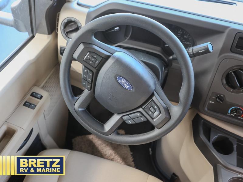 The Odyssey SE Class C gas motorhome by Entegra Coach is constructed with TuffShell vacuum-bond laminated sidewalls, a one-piece, seamless fiberglass front cap, and bead-foam insulation for added durability and strength. Whether you choose a model with a Ford E-350 chassis or Chevy 4500 chassis, you will get a durable coach made to last. The driver will also love the power steering, tilt steering wheel, and auxiliary start switch. The 7' interior ceiling height will provide plenty of space to stretch out and the high-intensity, recessed LED lights will make your space feel more like home. All of your power needs will be met with a 4,000-watt generator and 12V house battery, plus there is a 13.5K BTU A/C and 30K BTU furnace to keep you comfortable all year long. There are a couple additions you might want to add to further customize your Odyssey SE, like the optional automatic hydraulic leveling jacks and the optional 200W solar panel for some off-grid camping!